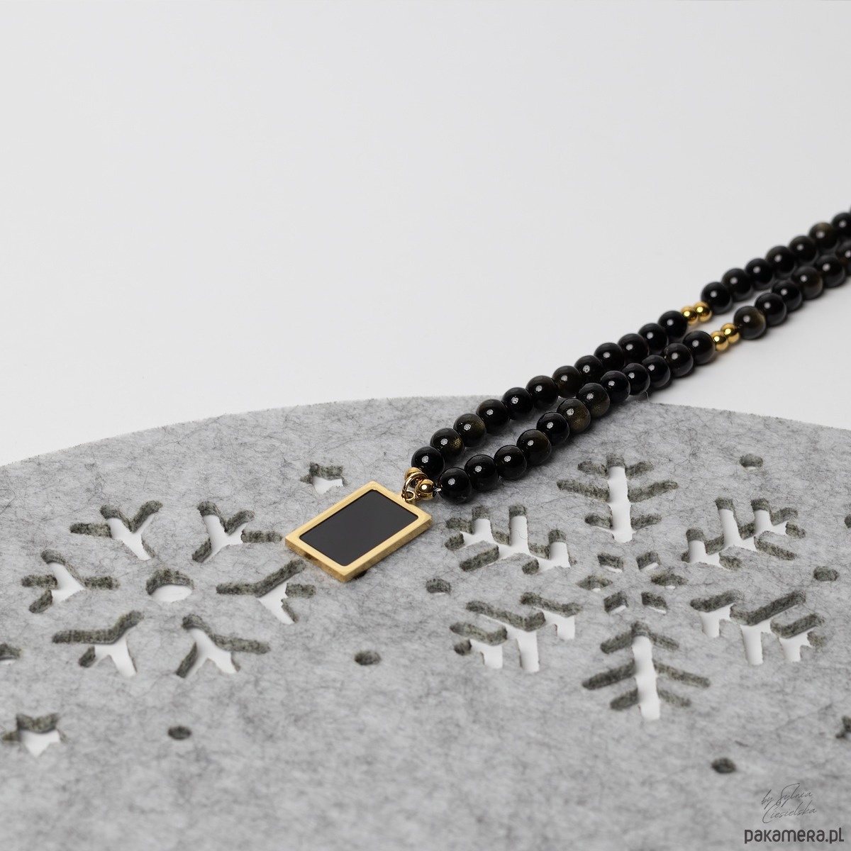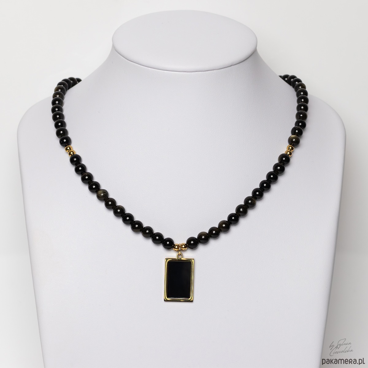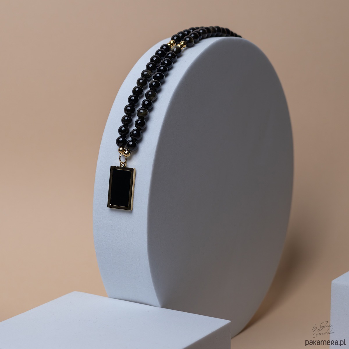 Każdy kamień obsydianu został precyzyjnie dobrany, aby stworzyć harmonijny, elegancki naszyjnik, który przyciąga spojrzenia.