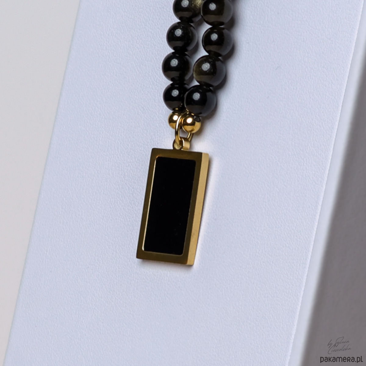 Naszyjnik Męski z Kamieni Naturalnych Obsydian Złoty i stali szlachetnej 316L