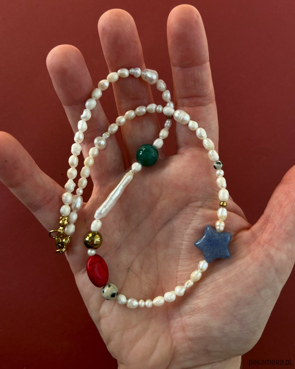 - Materiał: perły, kamień naturalny, stal chirurgiczna
