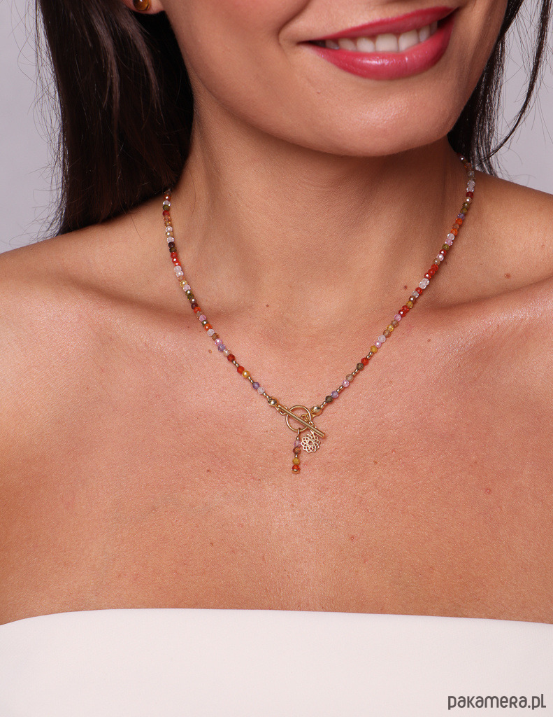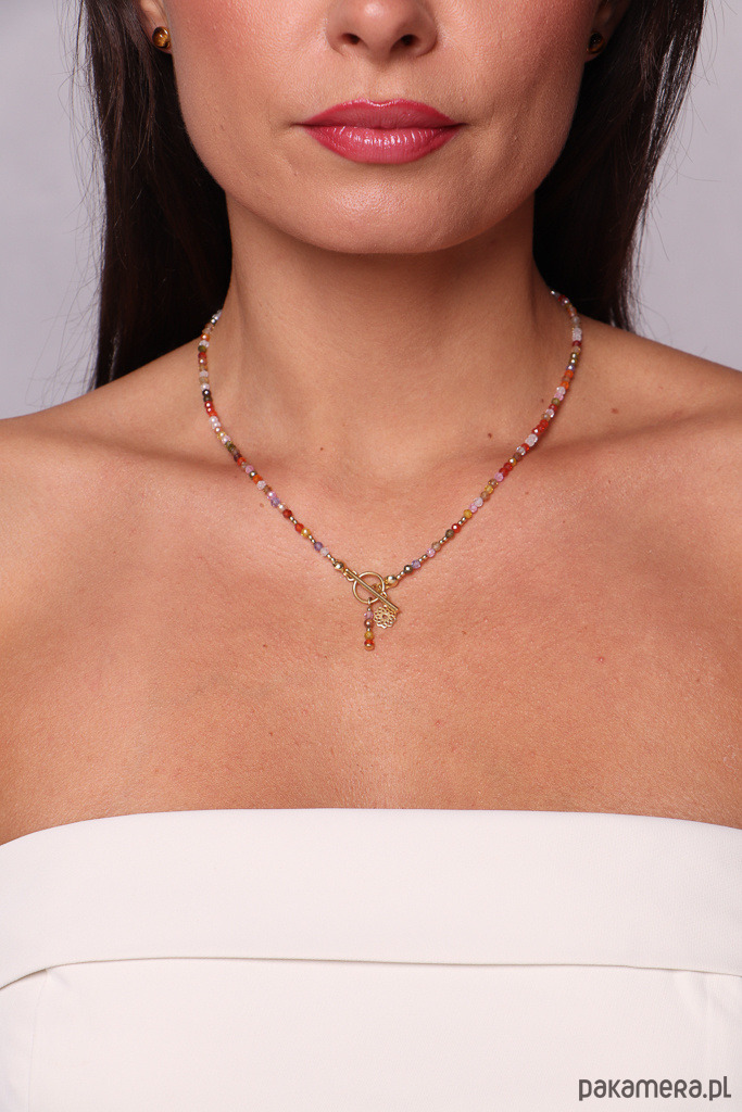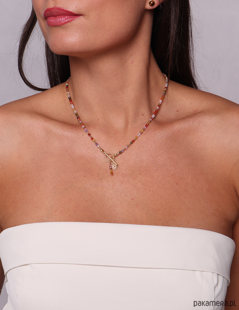 Naszyjnik świetnie sprawdzi się zarówno na co dzień, jak i do eleganckich stylizacji. Delikatne kamienie dodają mu lekkości, a złote wykończenie nadaje biżuterii luksusowego charakteru. To idealny wybór dla kobiet, które kochają biżuterię łączącą naturalność, jakość i ponadczasowy styl.