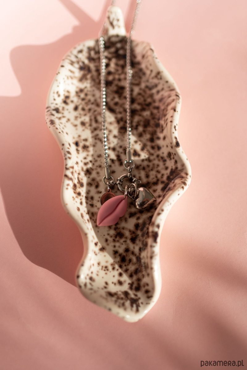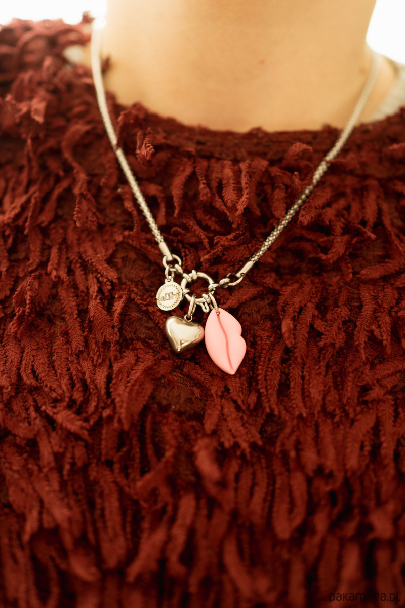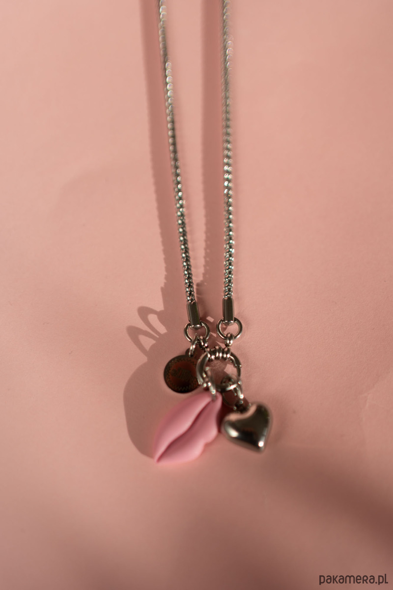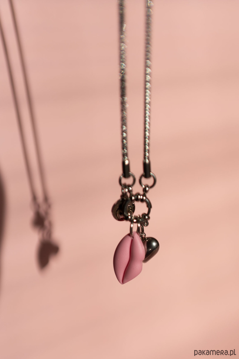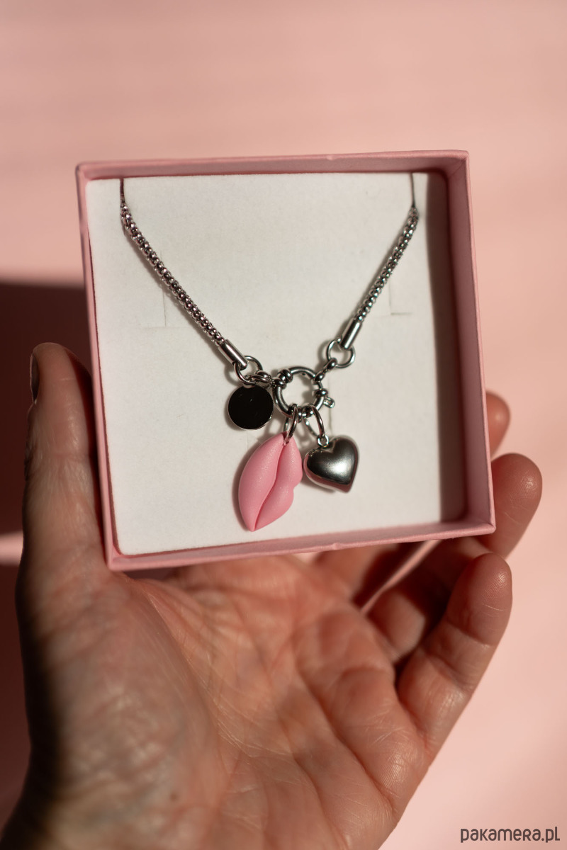 W ZESTAWIE ŁAŃCUSZEK ZE STALI CHIRURGICZNEJ I dwie zawieszki. Zawieszka usta w różowym kolorze ręcznie wykonana z gliny polimerowej oraz zawieszka ze stali chirurgicznej serce.