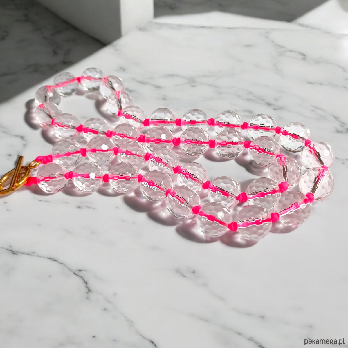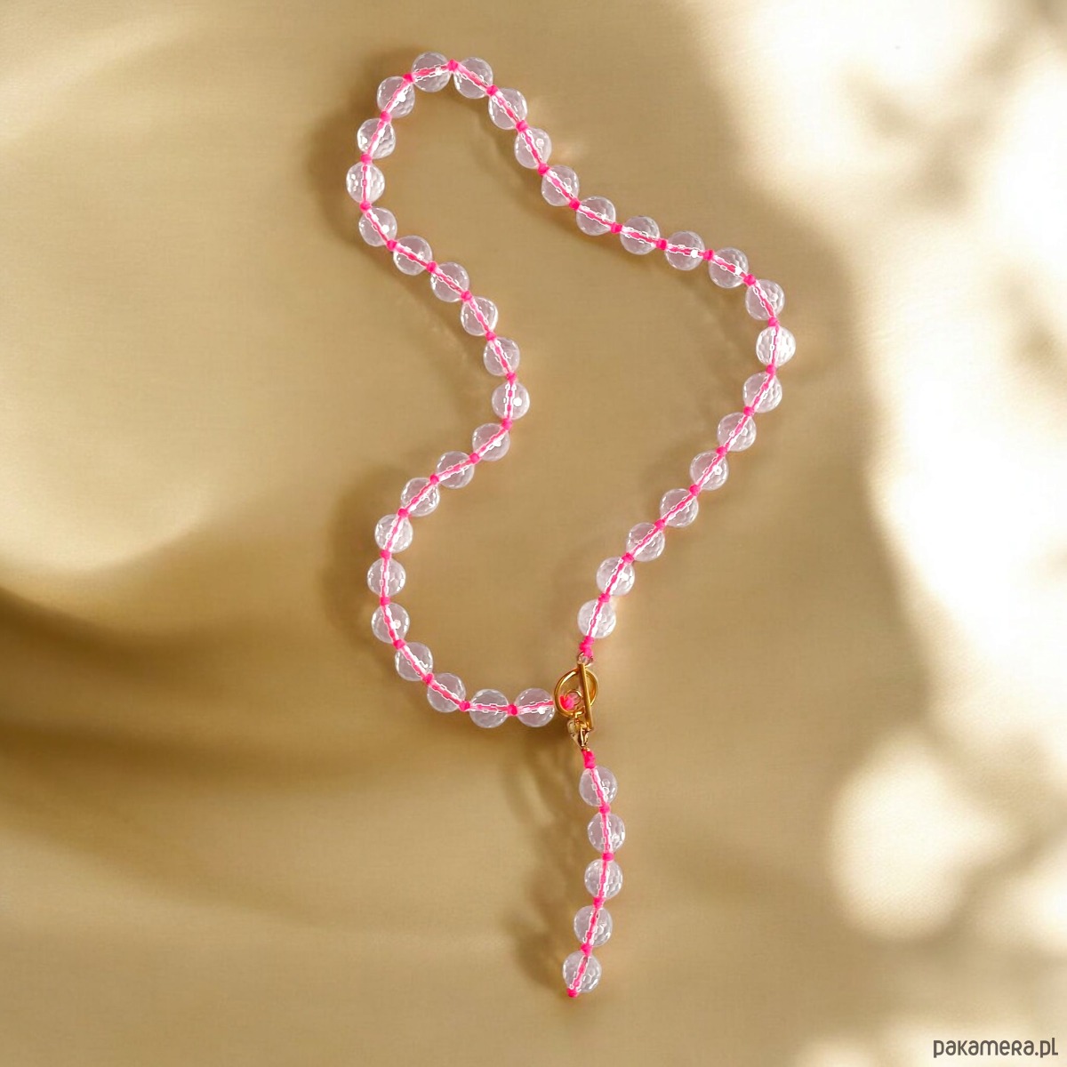 Naszyjnik modułowy : kryształ górski : hot pink : supełkowany