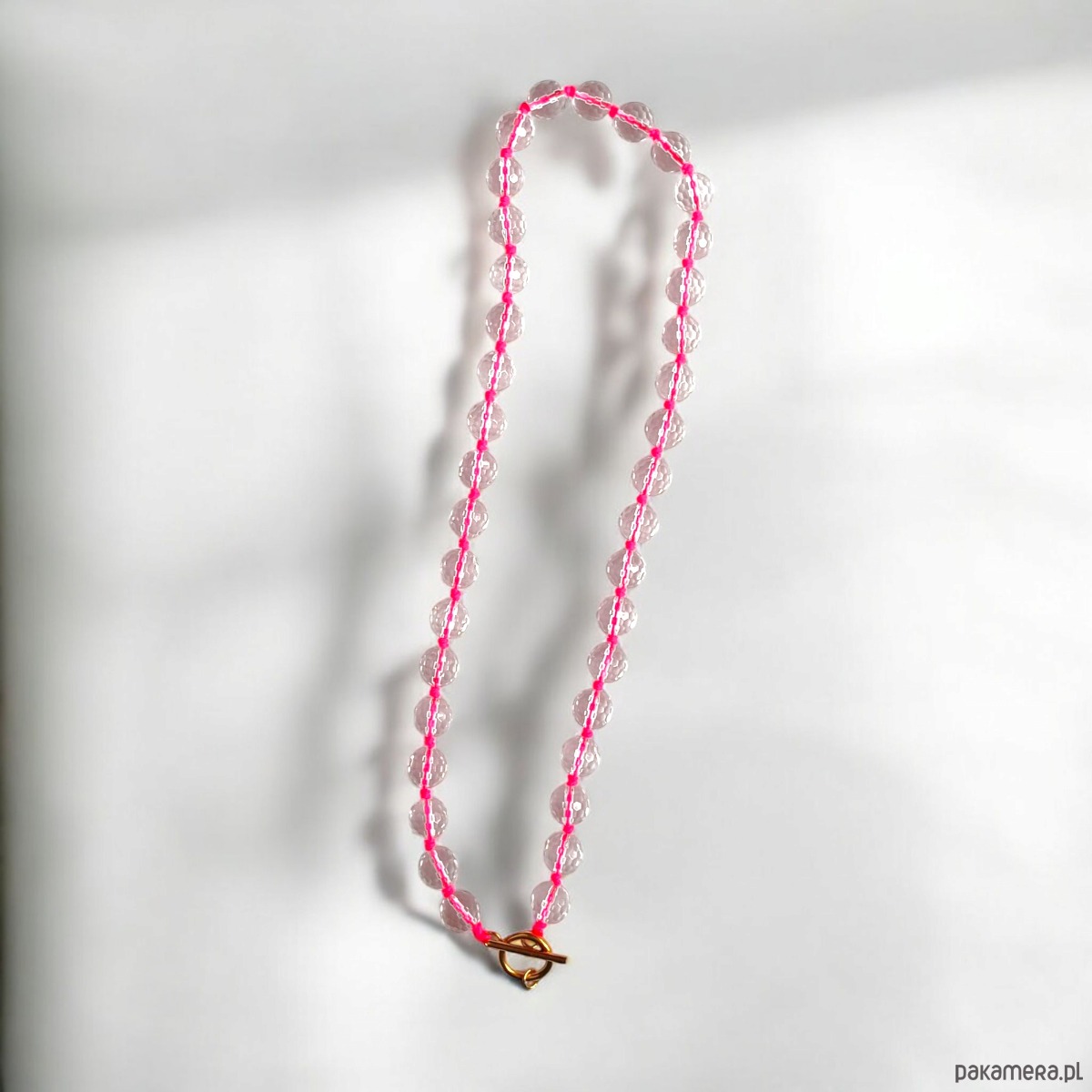 Naszyjnik supełkowany - na solidnym sznurku nylonowym w kolorze neon pink.