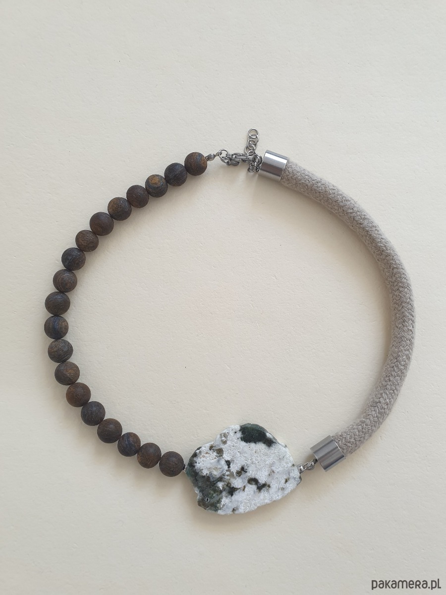 Naszyjnik MOON jaspis oceaniczny, bronzyt, lniany sznur