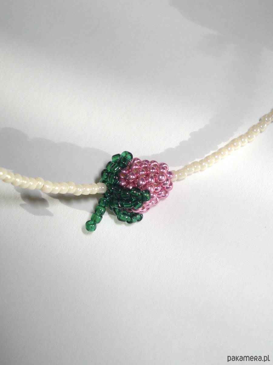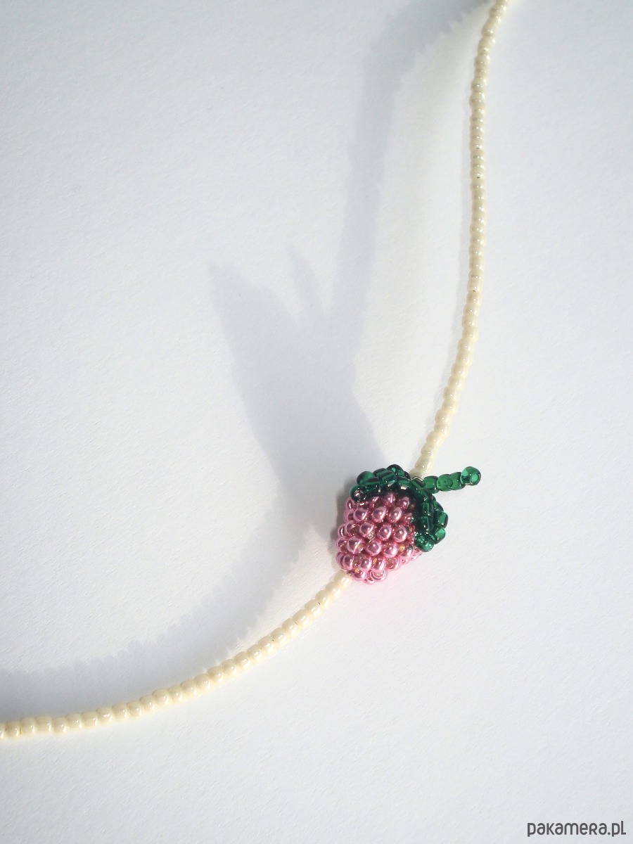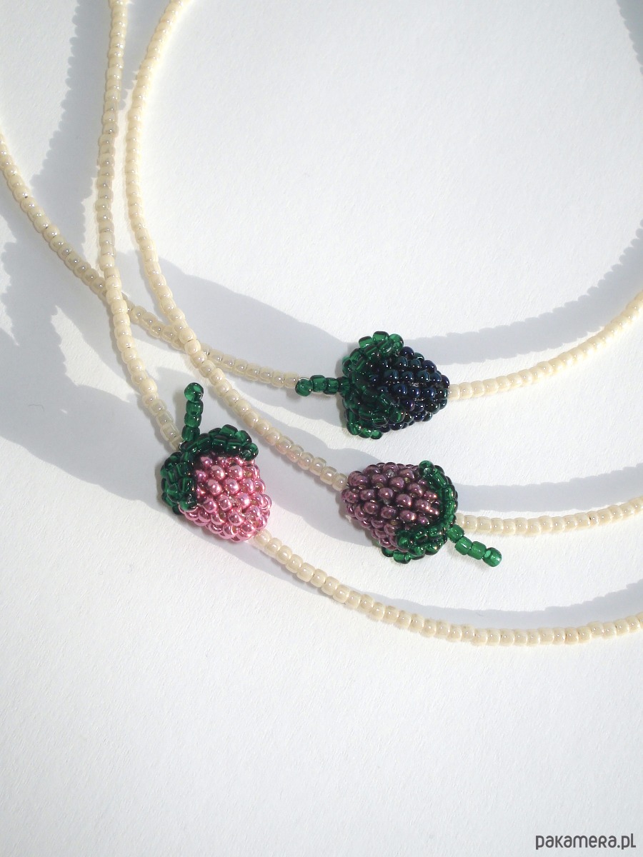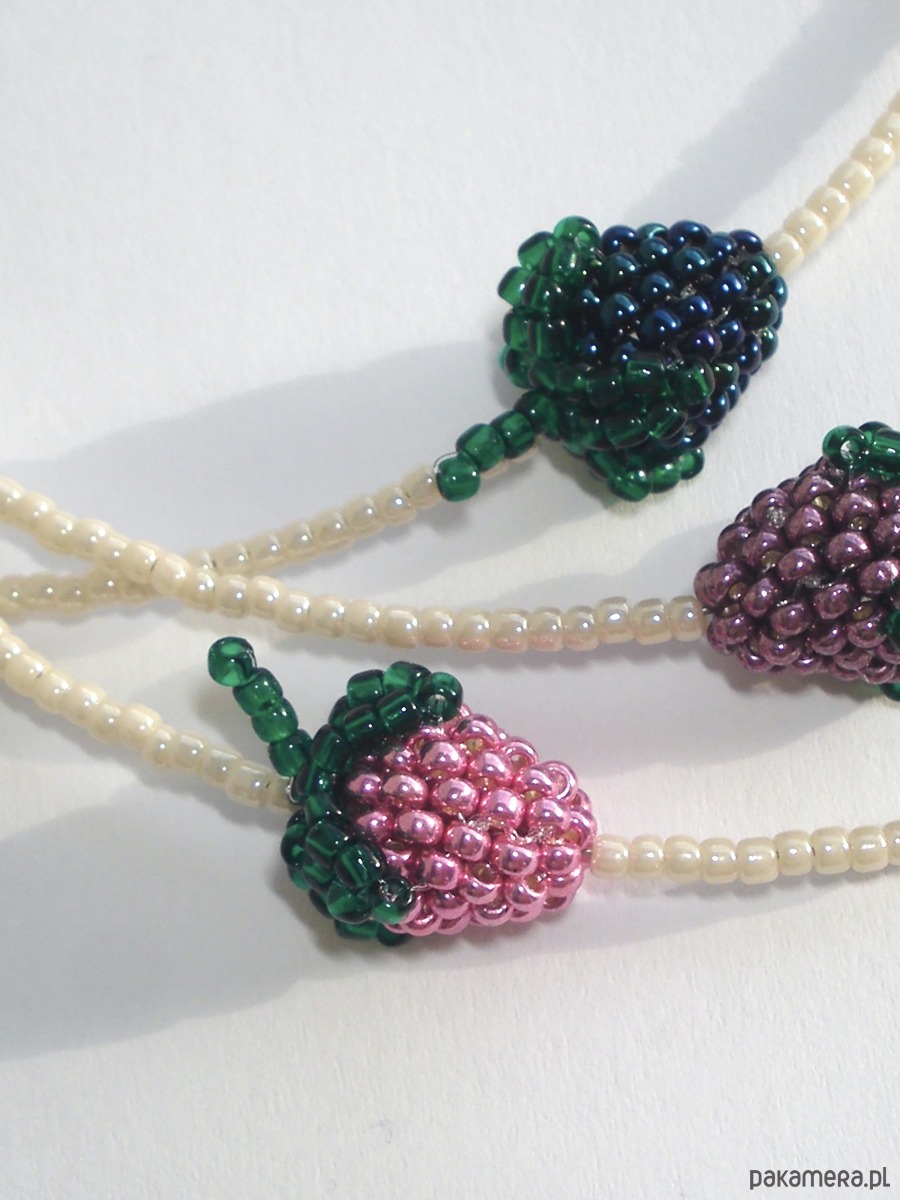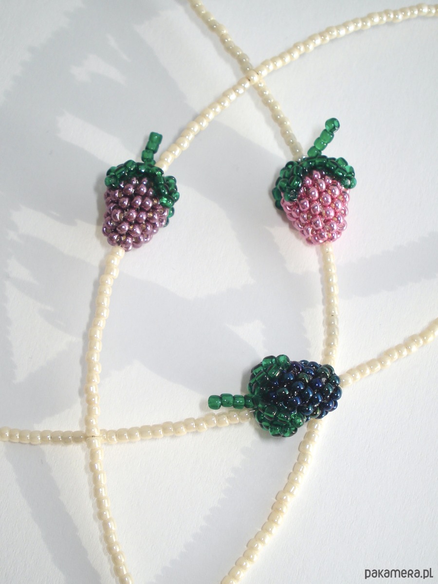 Owoce są ręcznie szyte z najwyższej jakości japońskich, szklanych koralików.