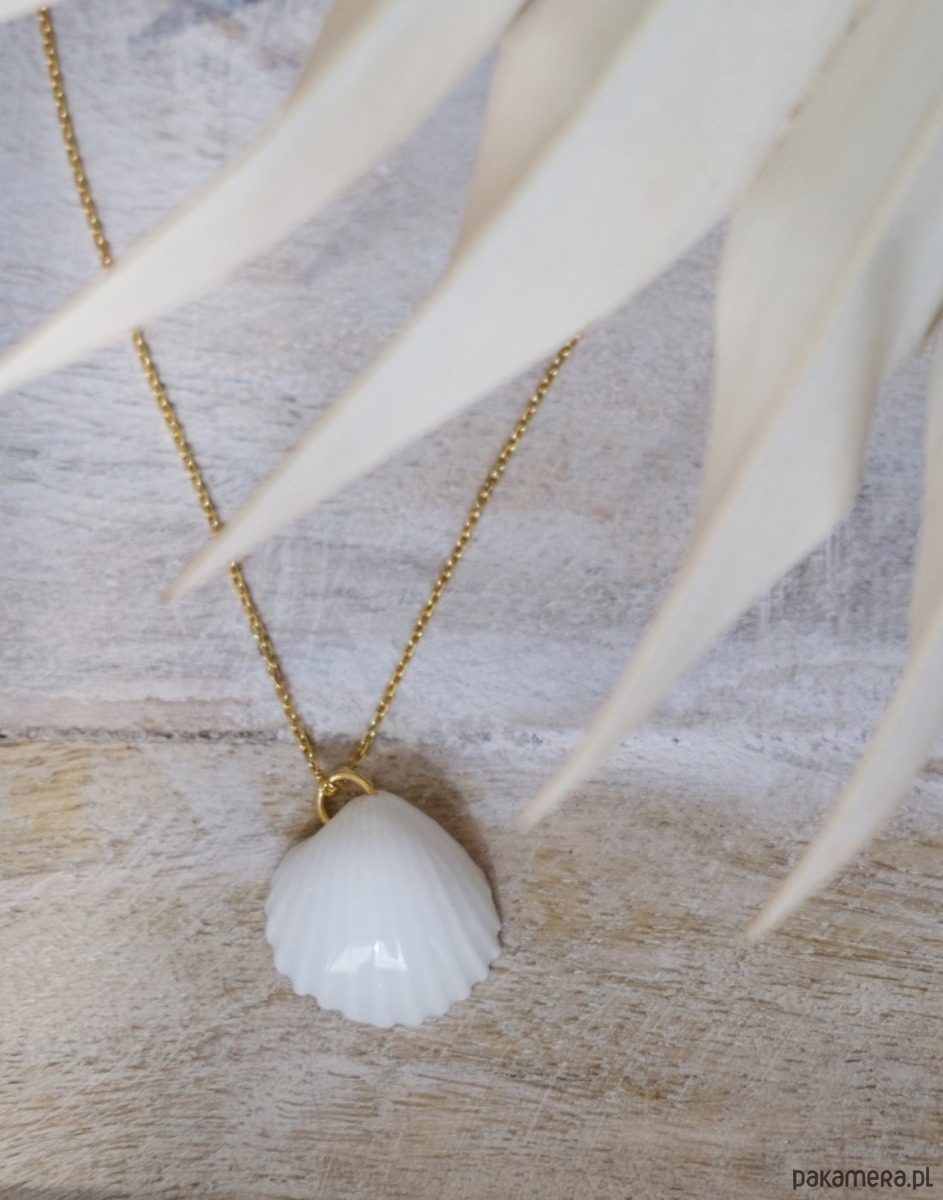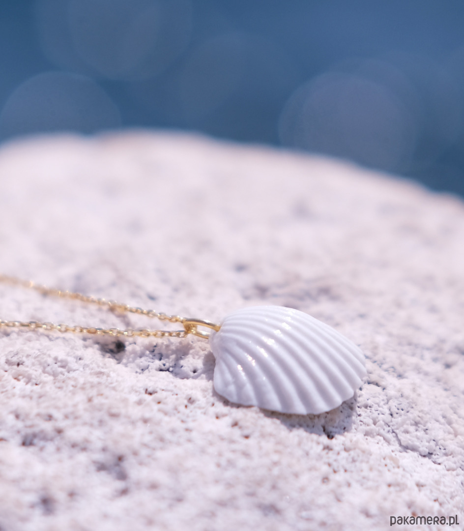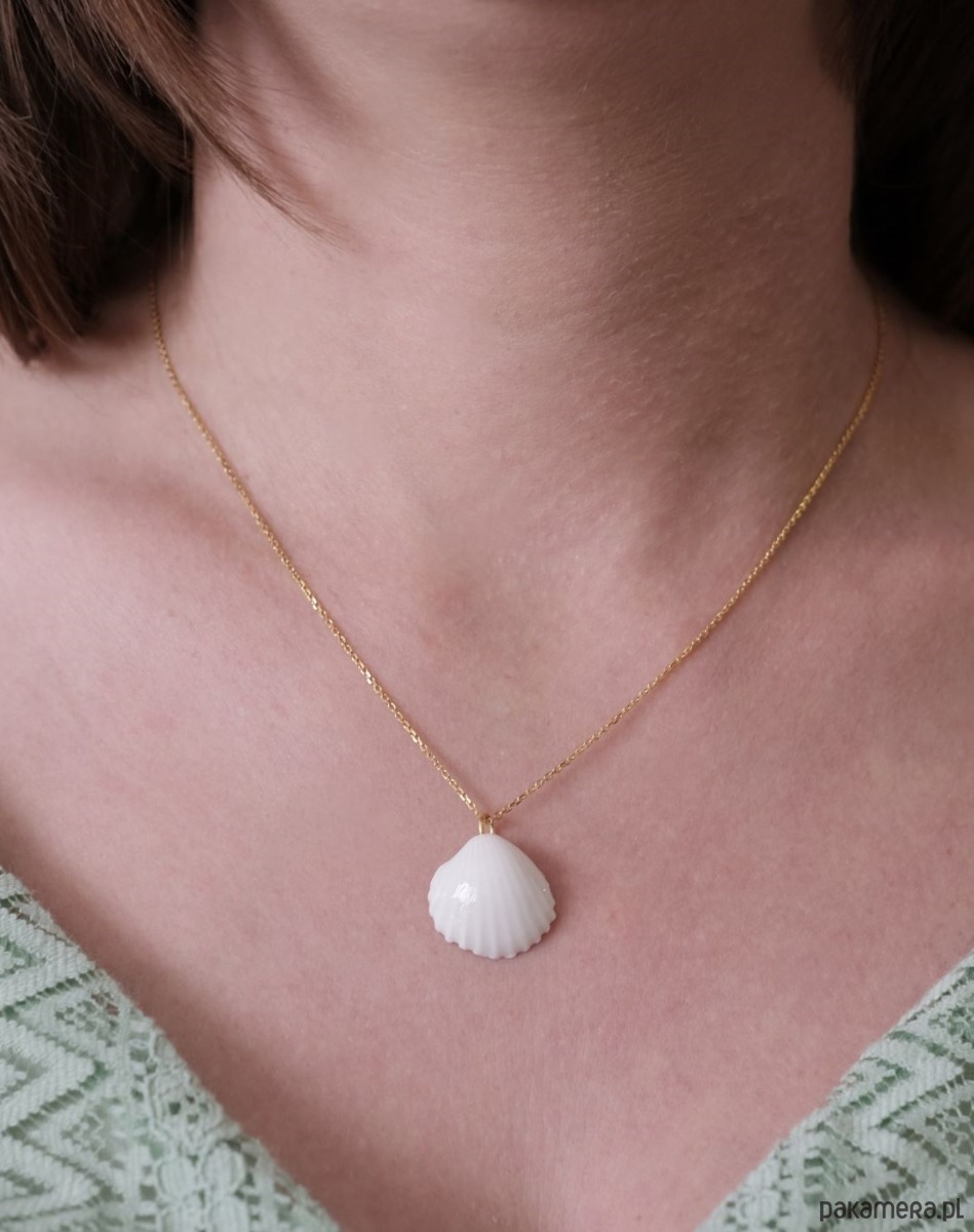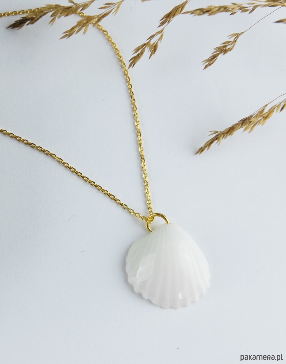 Naszyjnik z białej porcelany w kształcie muszli inspirowany morską głębią.