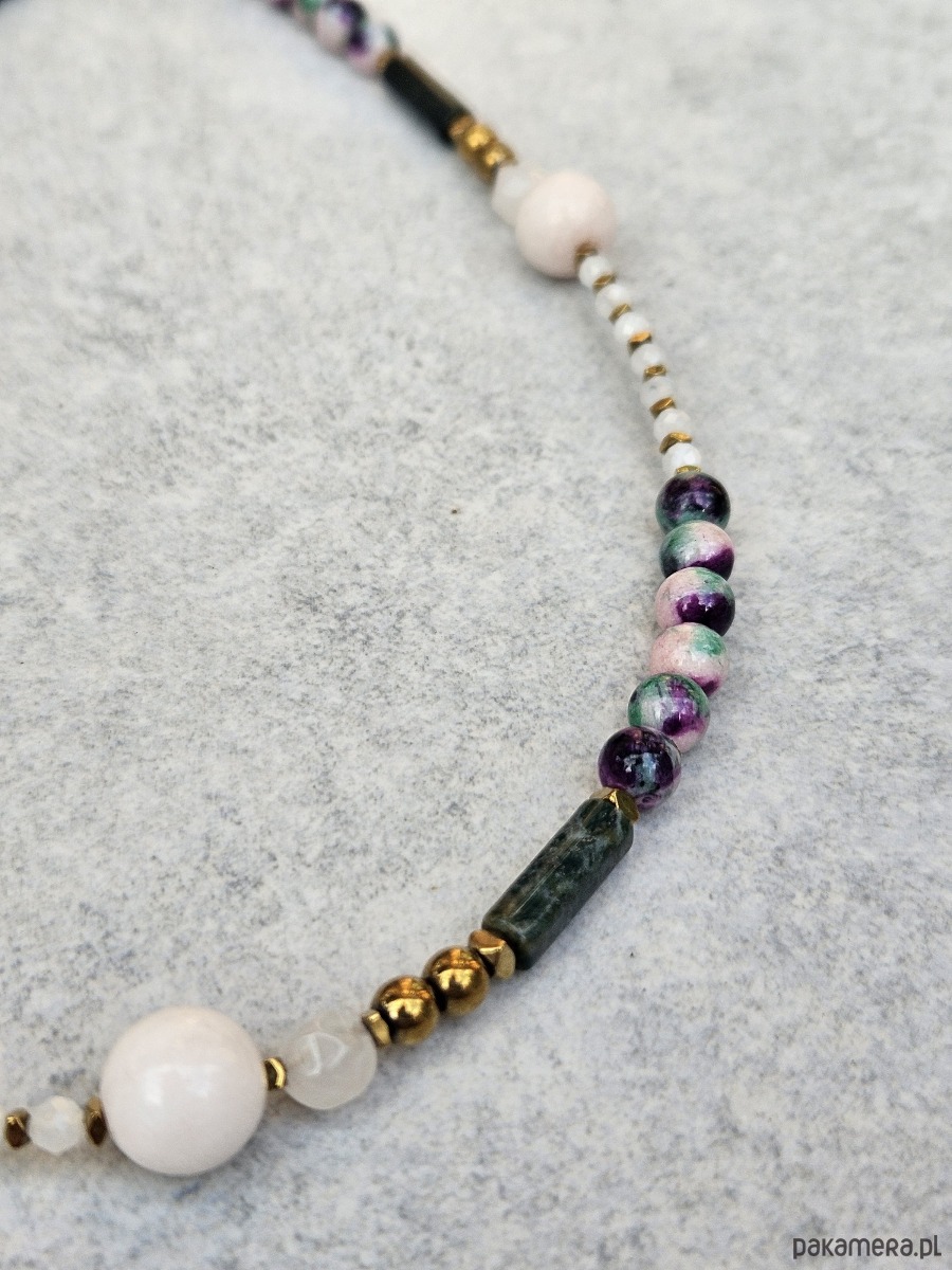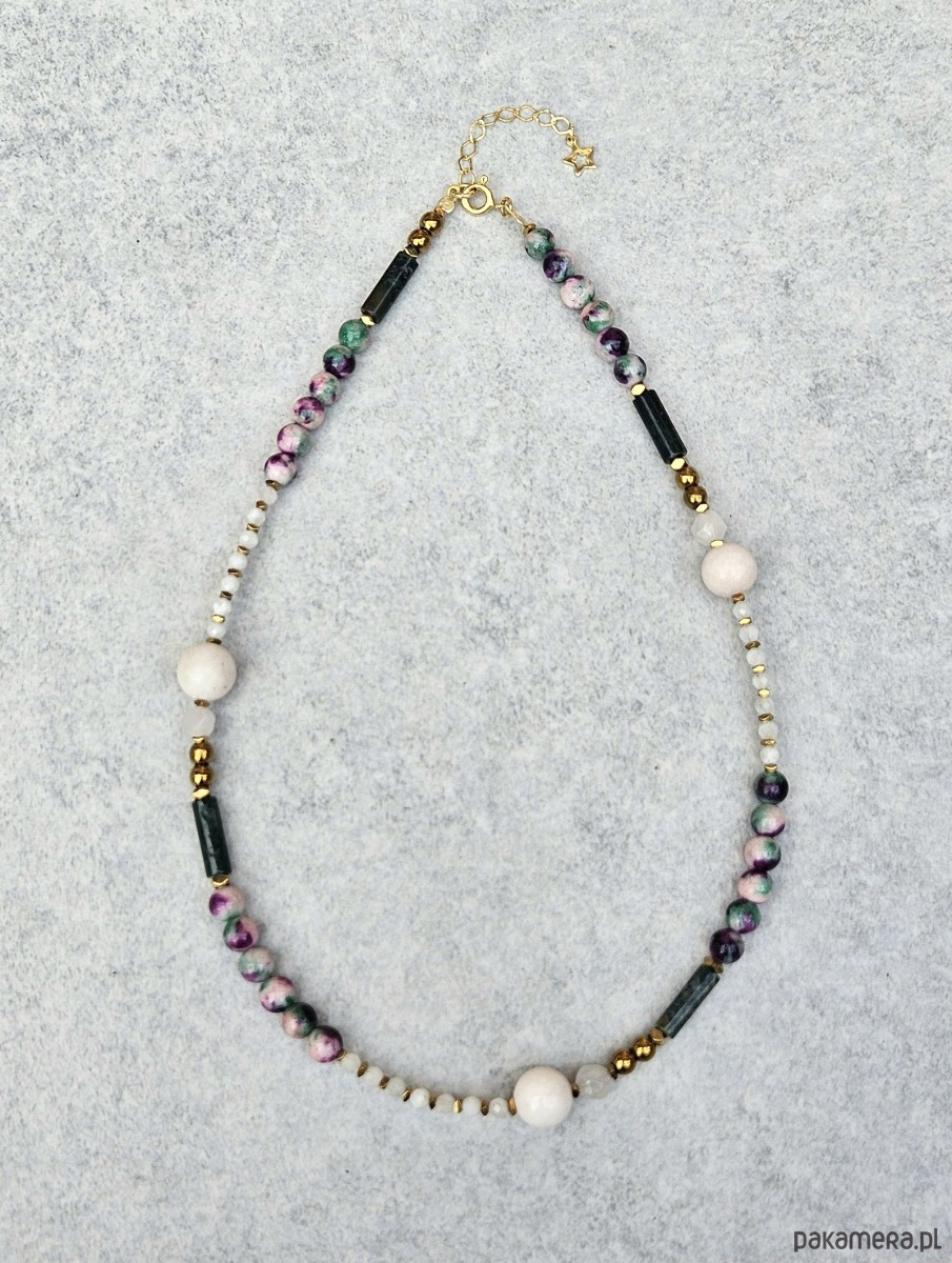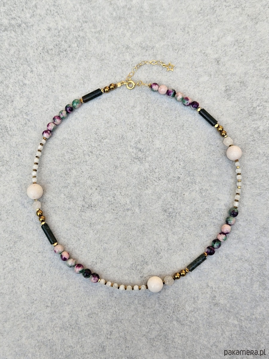 Naszyjnik N51 Kamień księżycowy, jadeit, agat indyjski, Ag925