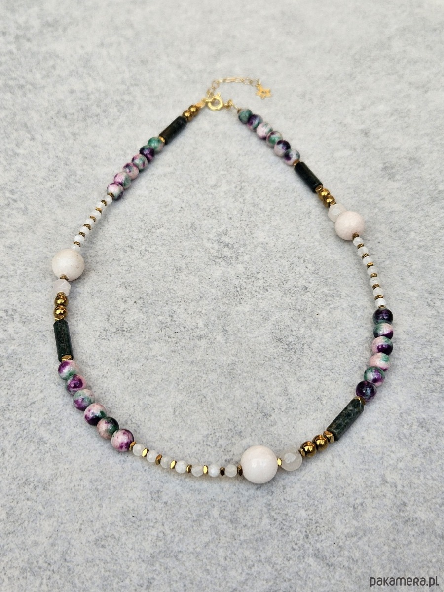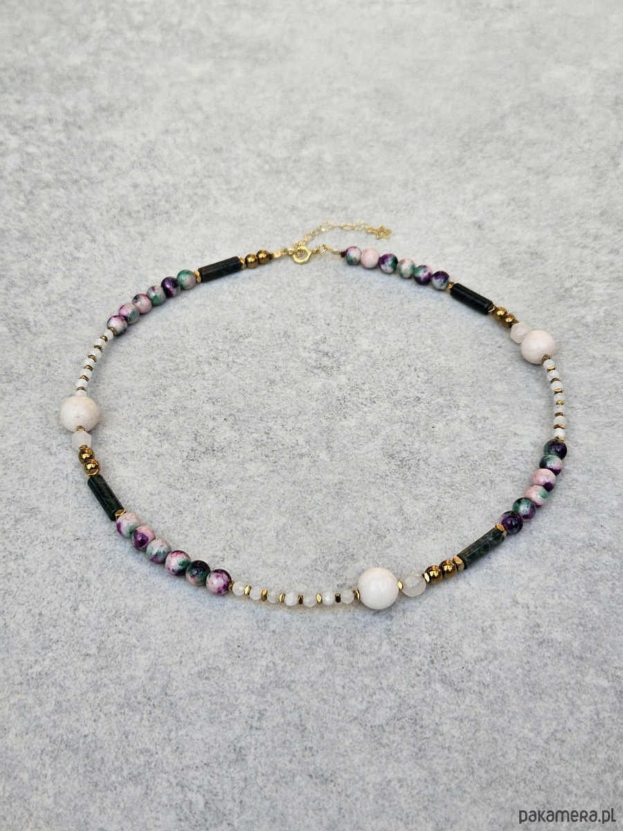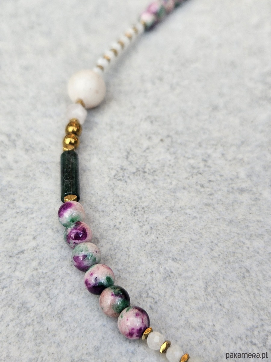 Naszyjnik N51 Kamień księżycowy, jadeit, agat indyjski, Ag925