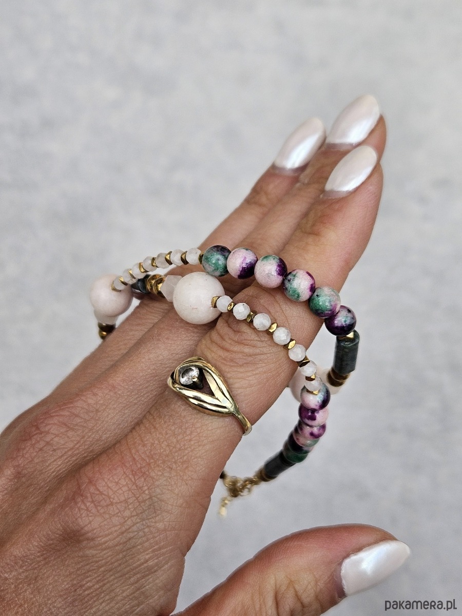 - Rodzaj kamienia: kwarc różowy, kamień księżycowy, jadeit, hematyt, agat