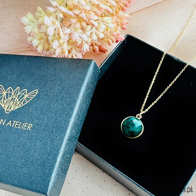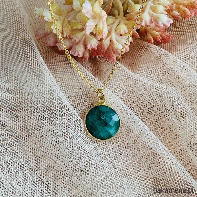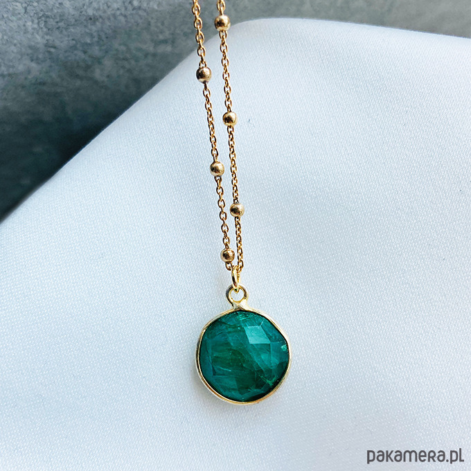 Wyjątkowo efektowny naszyjnik z fasetowanym oprawionym w srebro pozłacane kamieniem nefrytem . Elegancja i blask !
