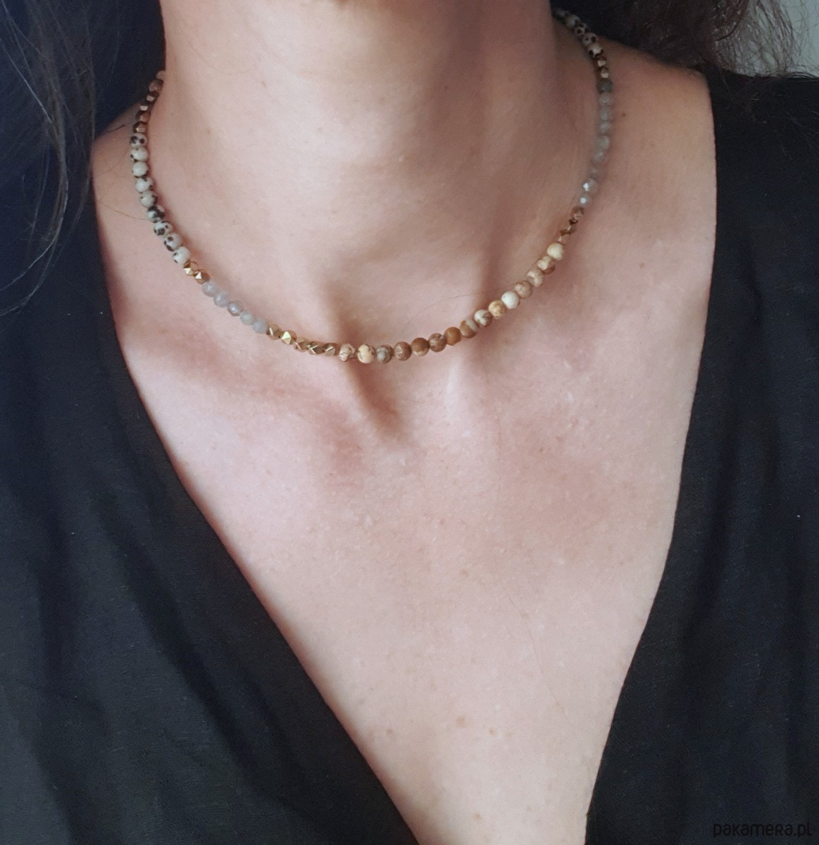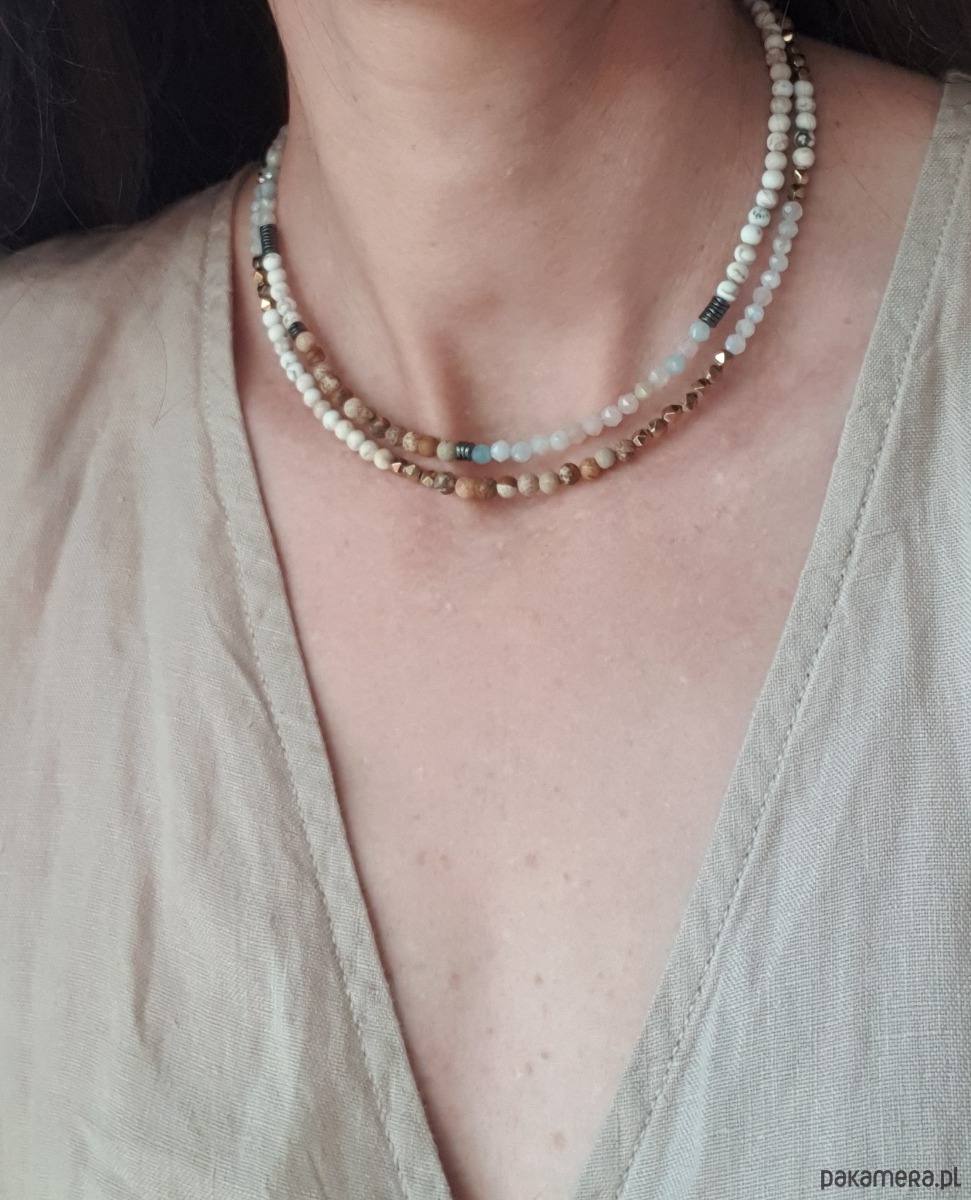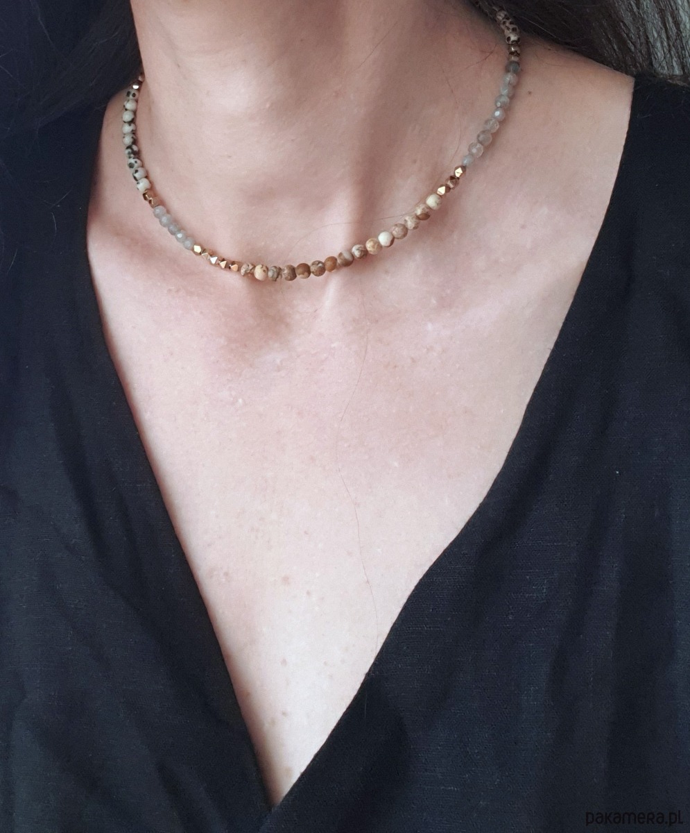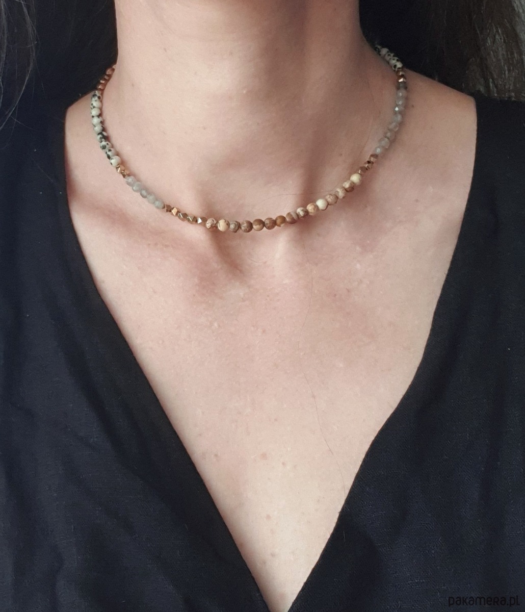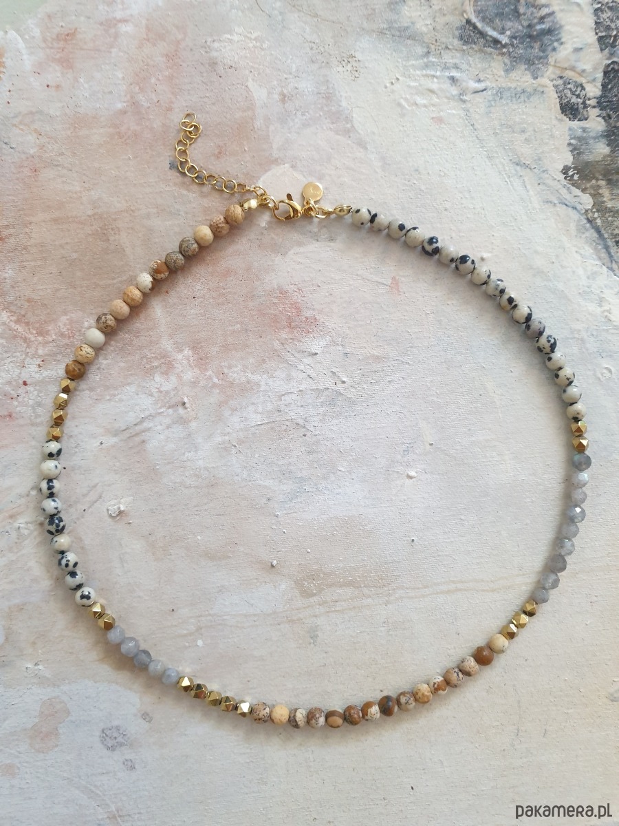 Naszyjnik NEO jaspis obrazkowy, dalmatyński, labradoryt, złoty hematyt