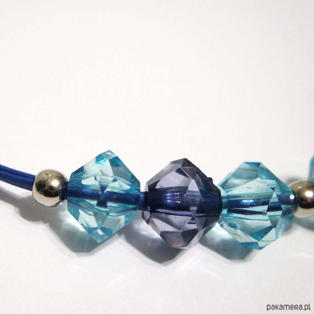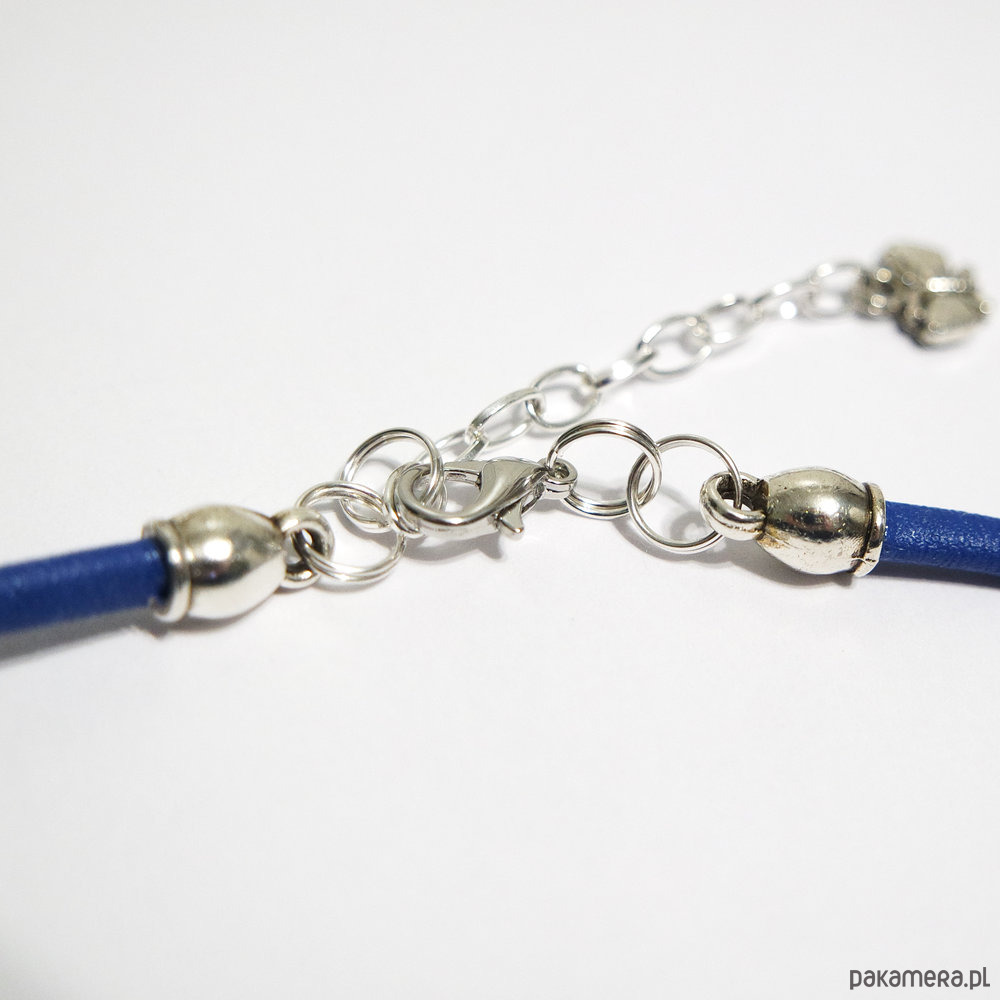 Wykonany z pięknych, fasetowanych koralików akrylowych i rzemienia z eko-skóry.