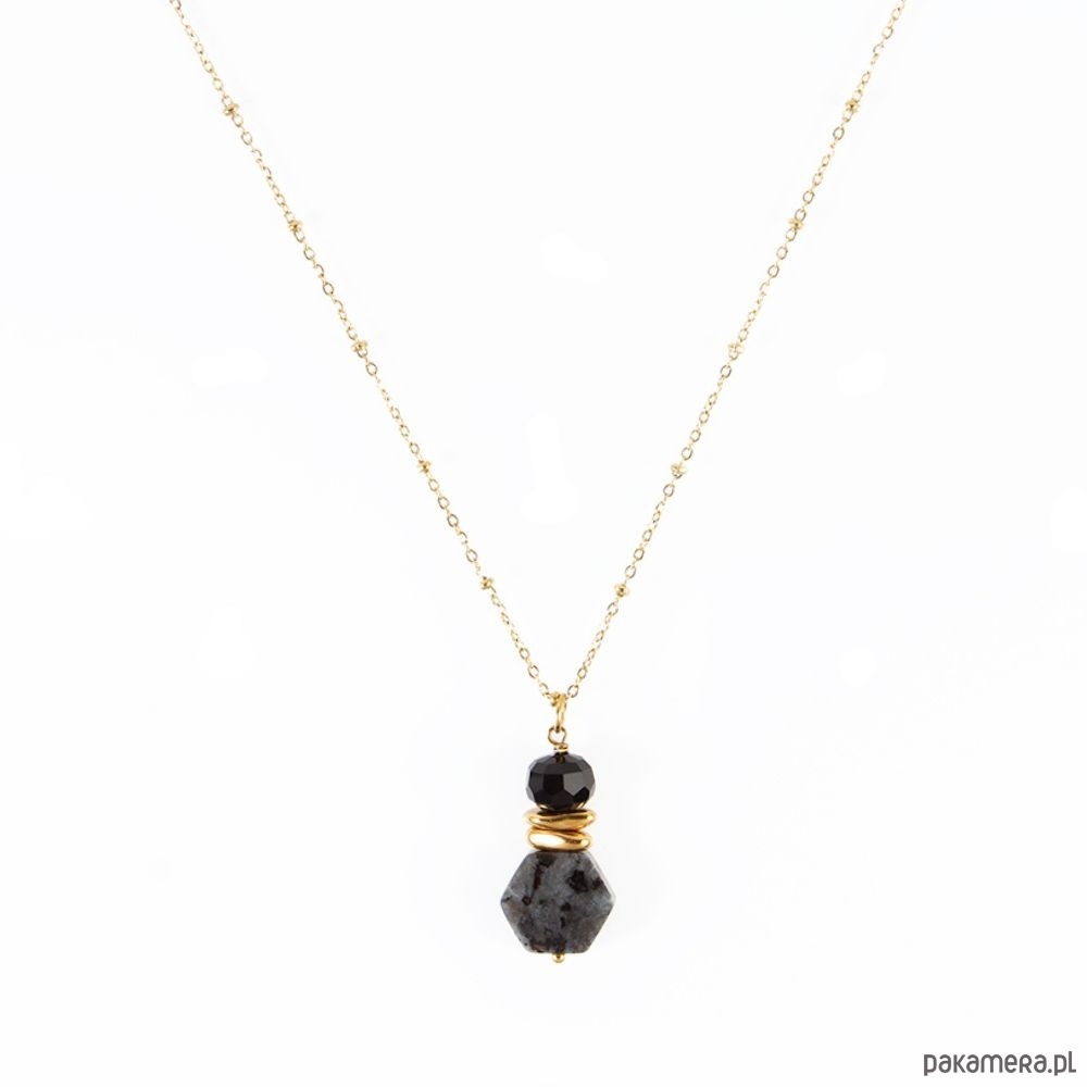 Wymiary: Kamienie:Hematyt/Labradoryt/Turmalin czarnyWielkość kamieni: ok.2x6mm/12mm/6x7mDługość naszyjnika: 45cm + 5cm regulacjaMateriał: antyalergiczna stal szlachetna