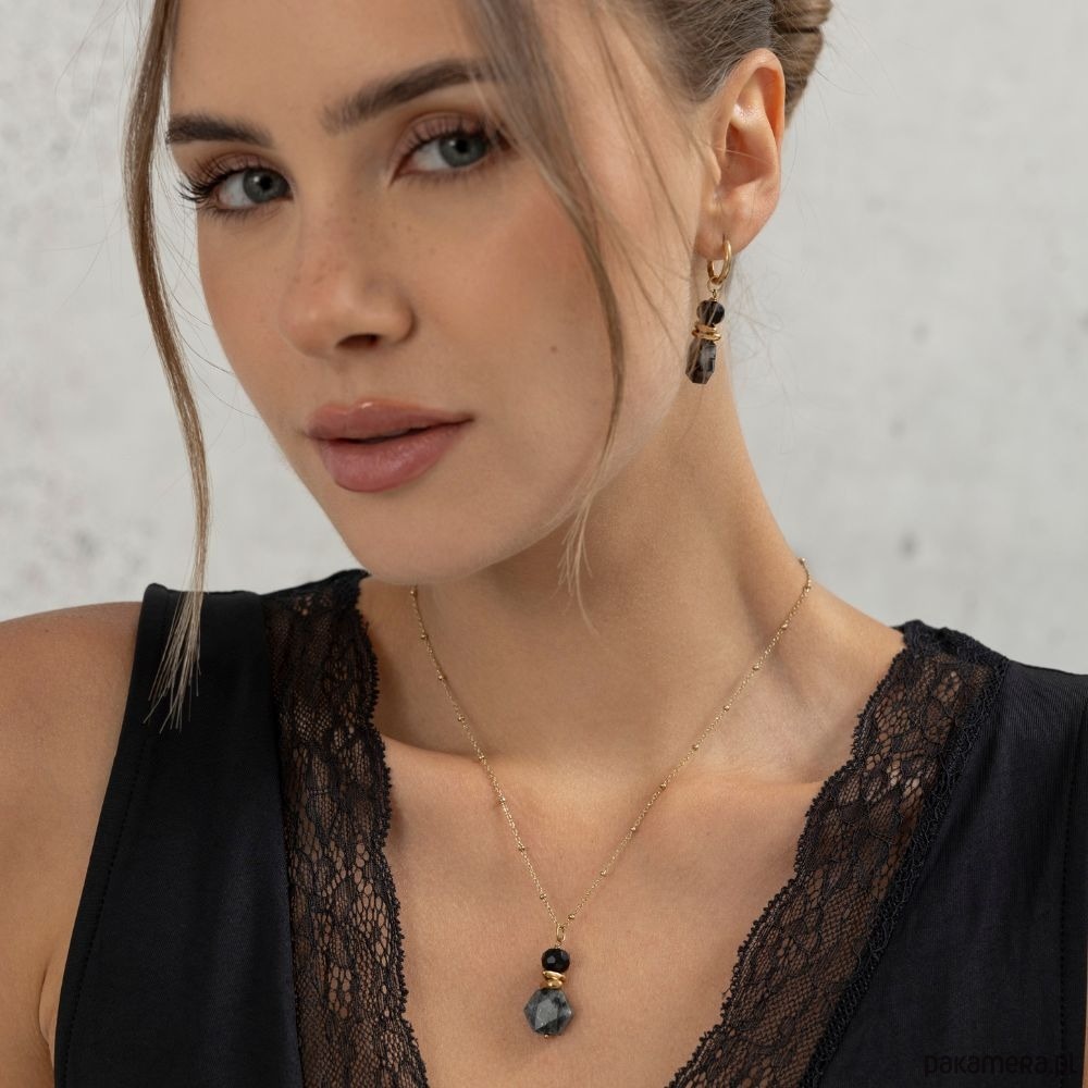 Delikatny, pozłacany łańcuszek subtelnie podkreśla elegancję naszyjnika, tworząc kompozycję, która łączy w sobie mistyczny charakter kamieni z nowoczesnym minimalizmem. Każdy egzemplarz wykonany jest ręcznie z naturalnych kamieni – dlatego każdy naszyjnik jest niepowtarzalny, jak jego właścicielka.