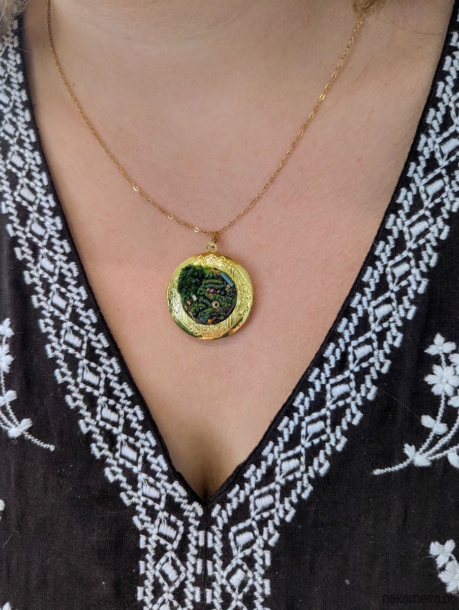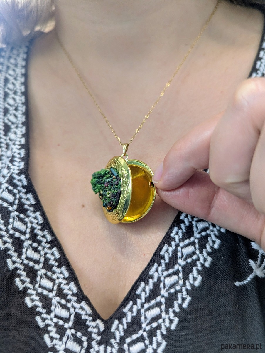 Naszyjnik - okrągły sekretnik inspirowany lasem