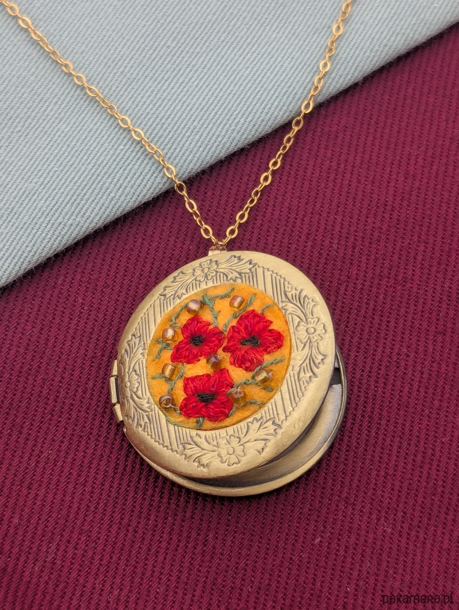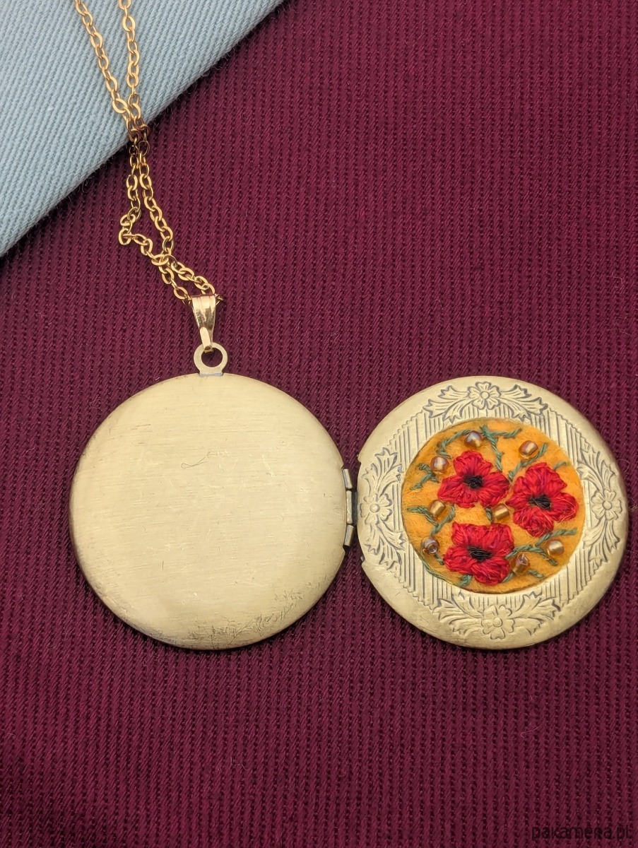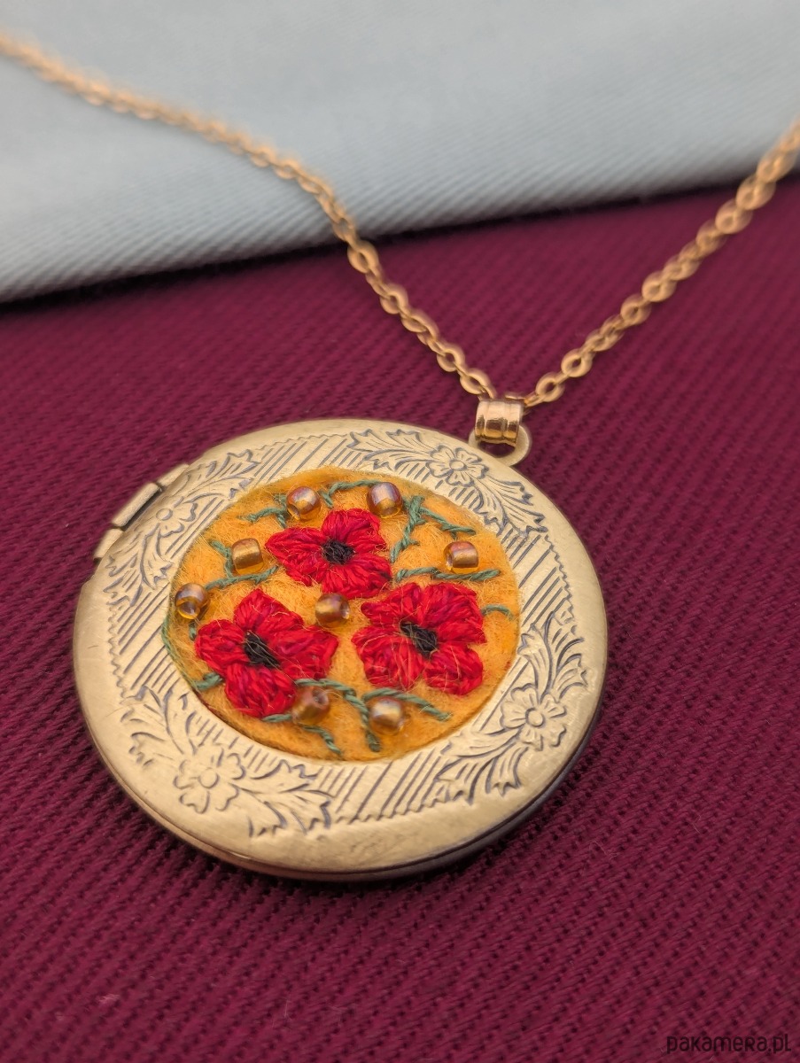 Ten sekretnik z haftowanymi makami to mały amulet, w którym ukryta jest odrobina lata. Na jego powierzchni wyhaftowałam maki – symbole odwagi, pamięci i pasji.