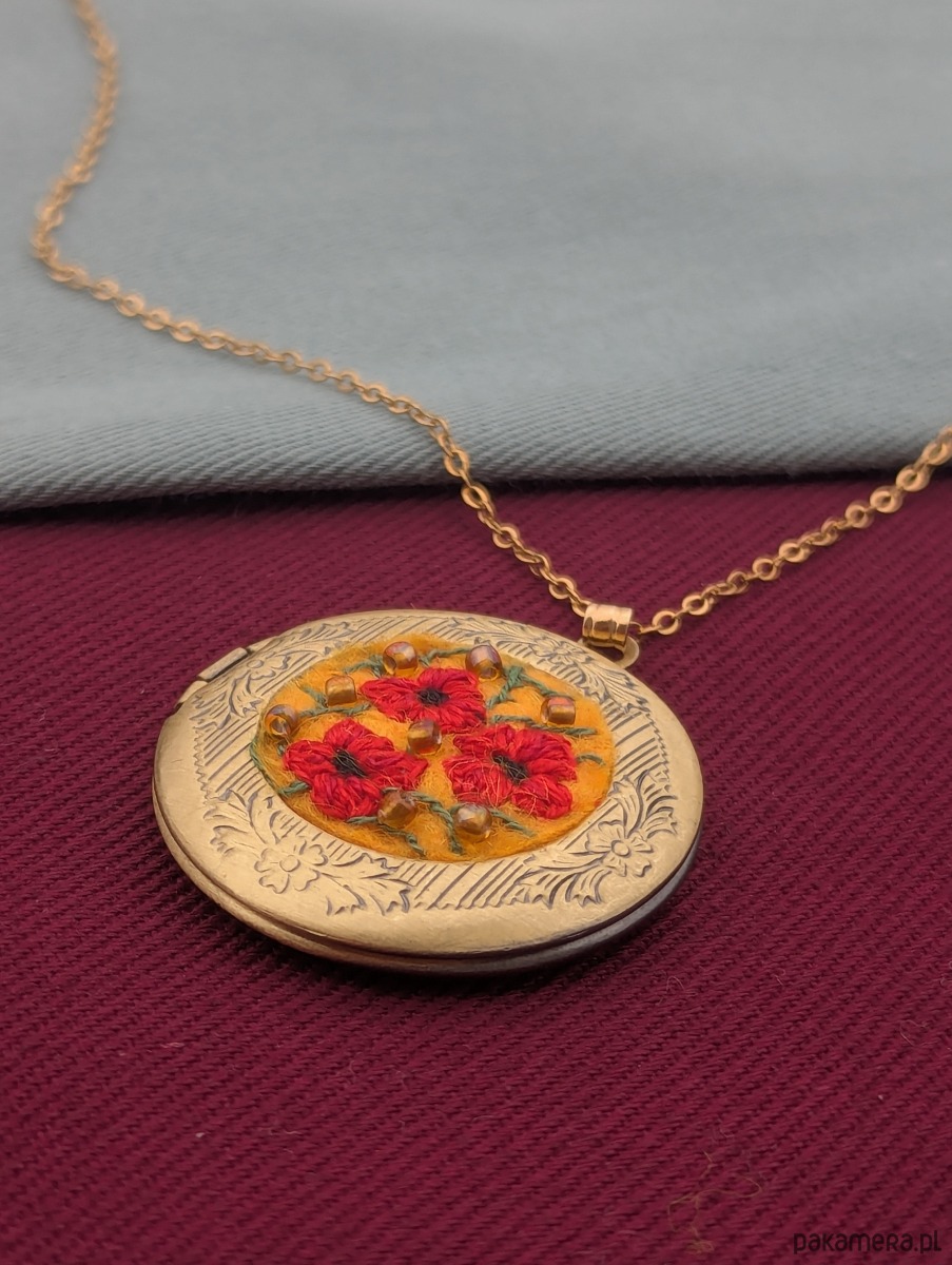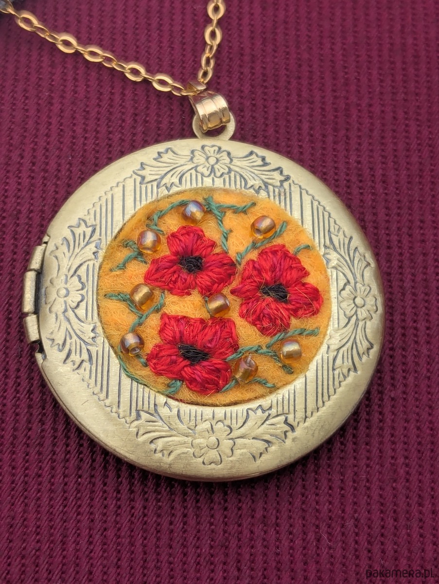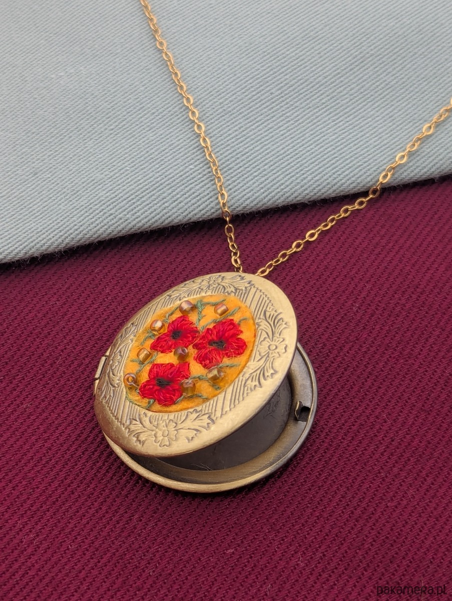 Ten sekretnik z haftowanymi makami to mały amulet, w którym ukryta jest odrobina lata. Na jego powierzchni wyhaftowałam maki – symbole odwagi, pamięci i pasji.