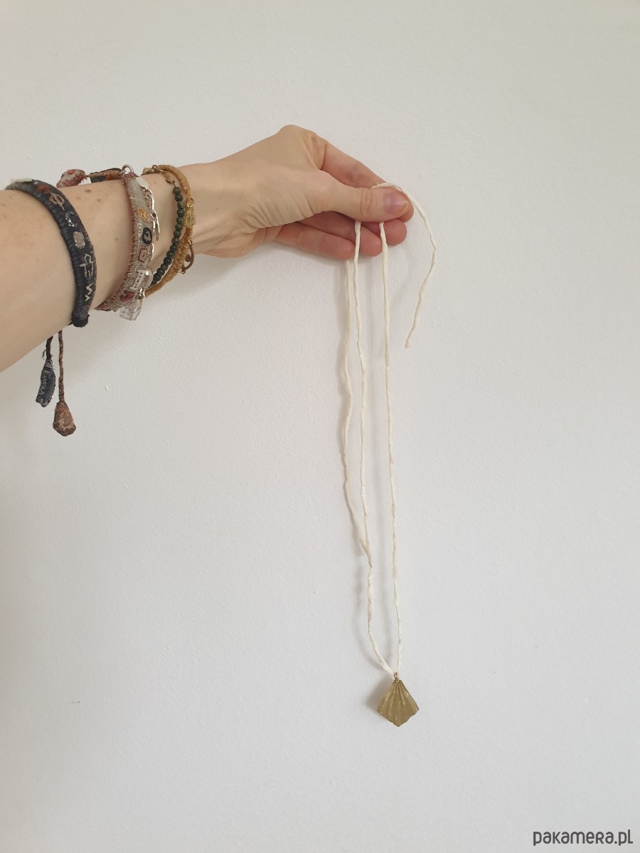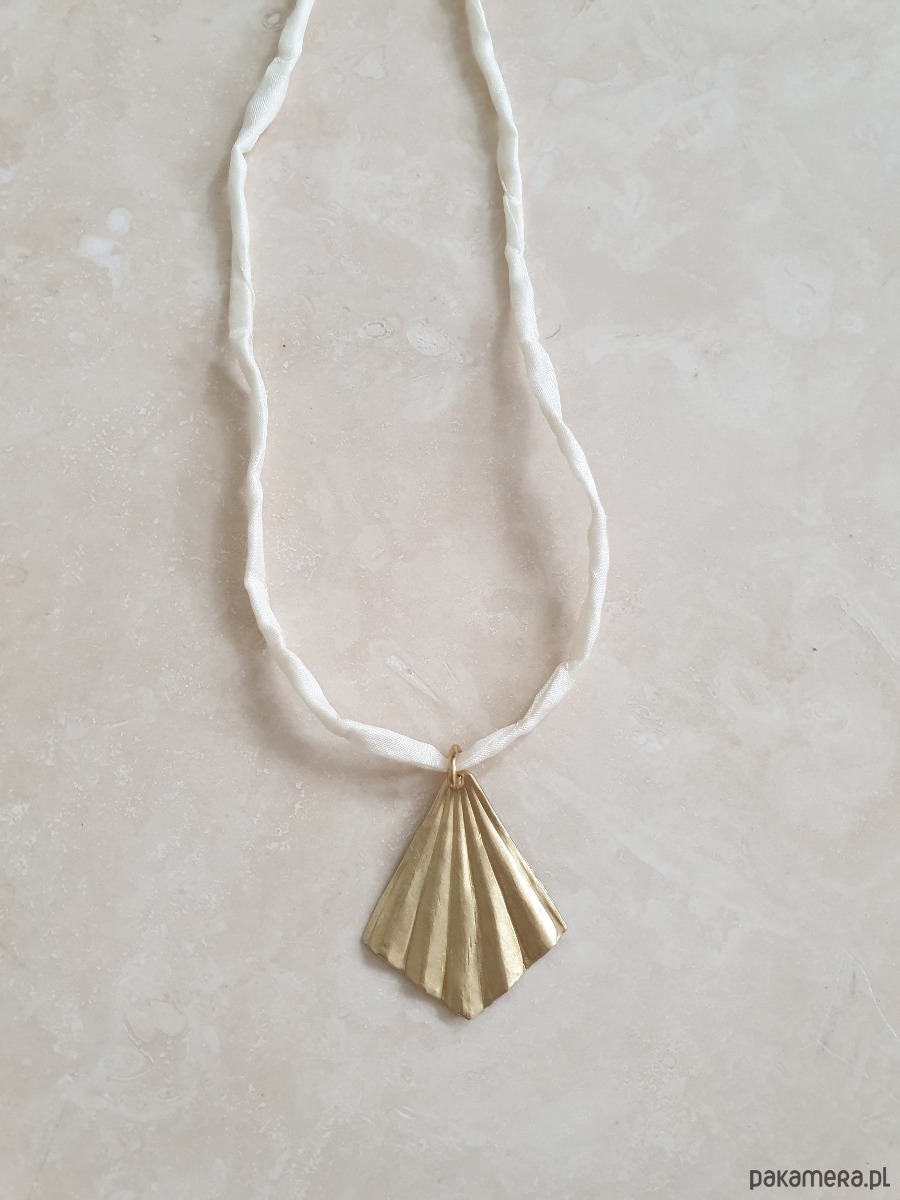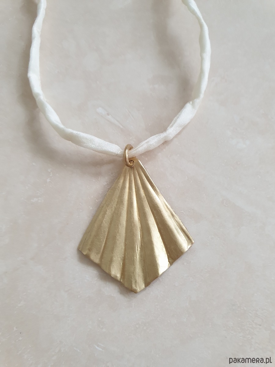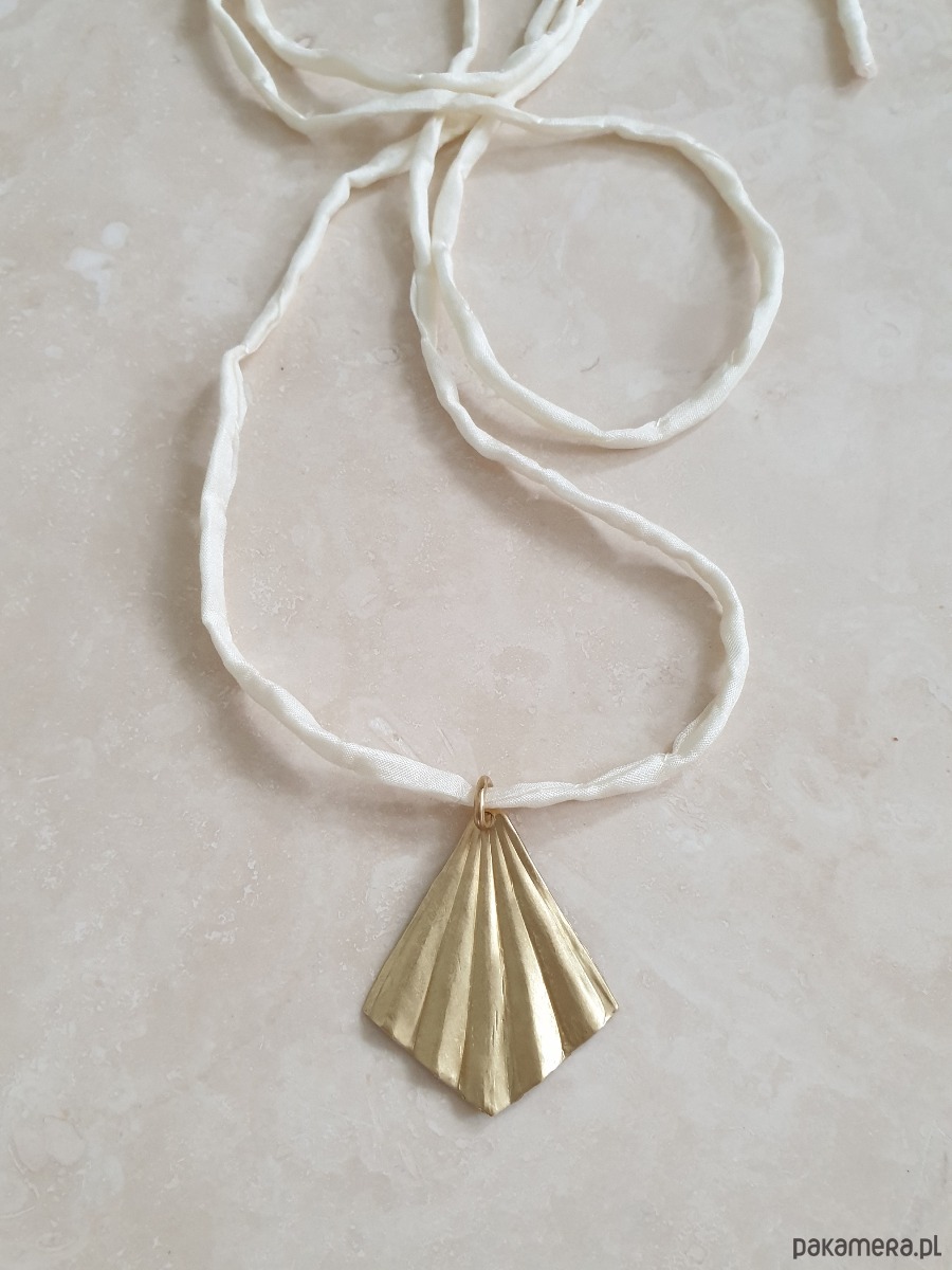 Naszyjnik ORIGAMI mały na jedwabnej wstążce, kremowy, mosiądz surowy
