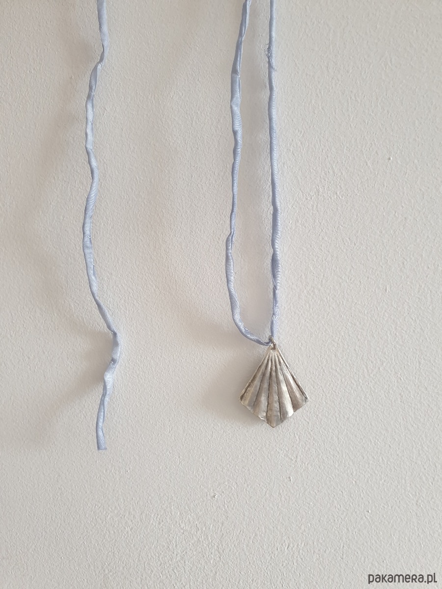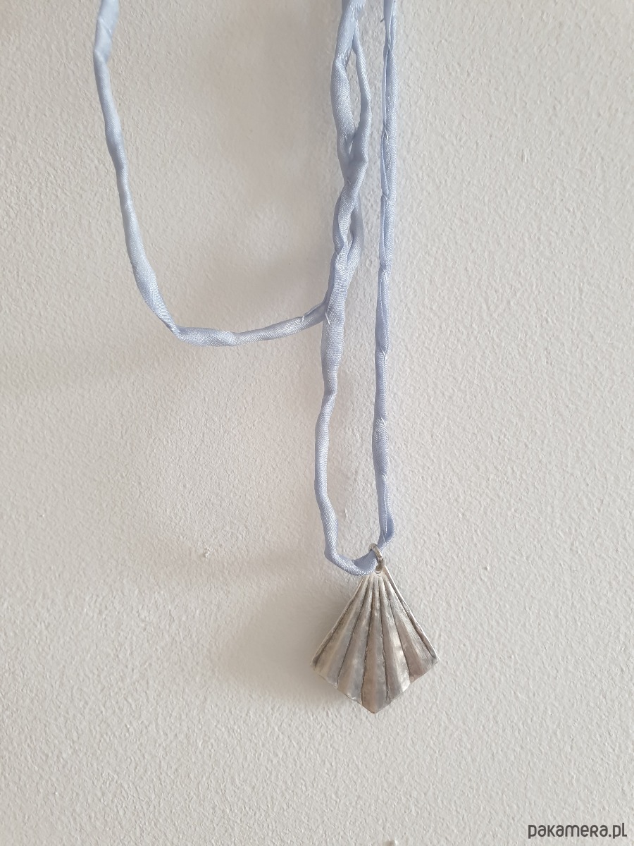 Naszyjnik ORIGAMI mały na jedwabnej wstążce, niebieski, mosiądz posrebrzany