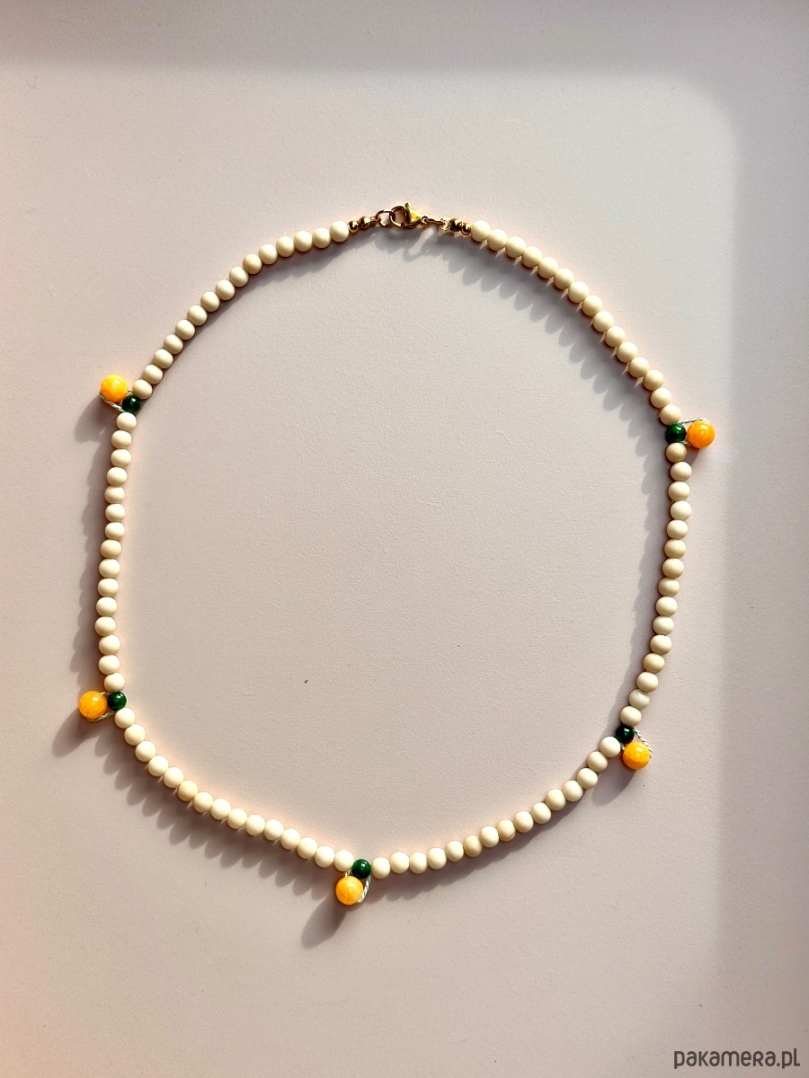 Naszyjnik wykonany z pięknego kamyczka rzecznego w odcieniach beżu oraz jaspisu .
