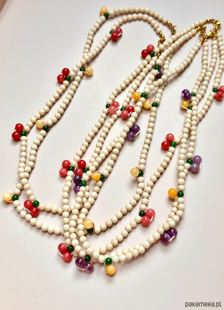 Przepiękny naszyjnik z kamieni pleciony ręcznie przy użyciu nici jedwabnej.