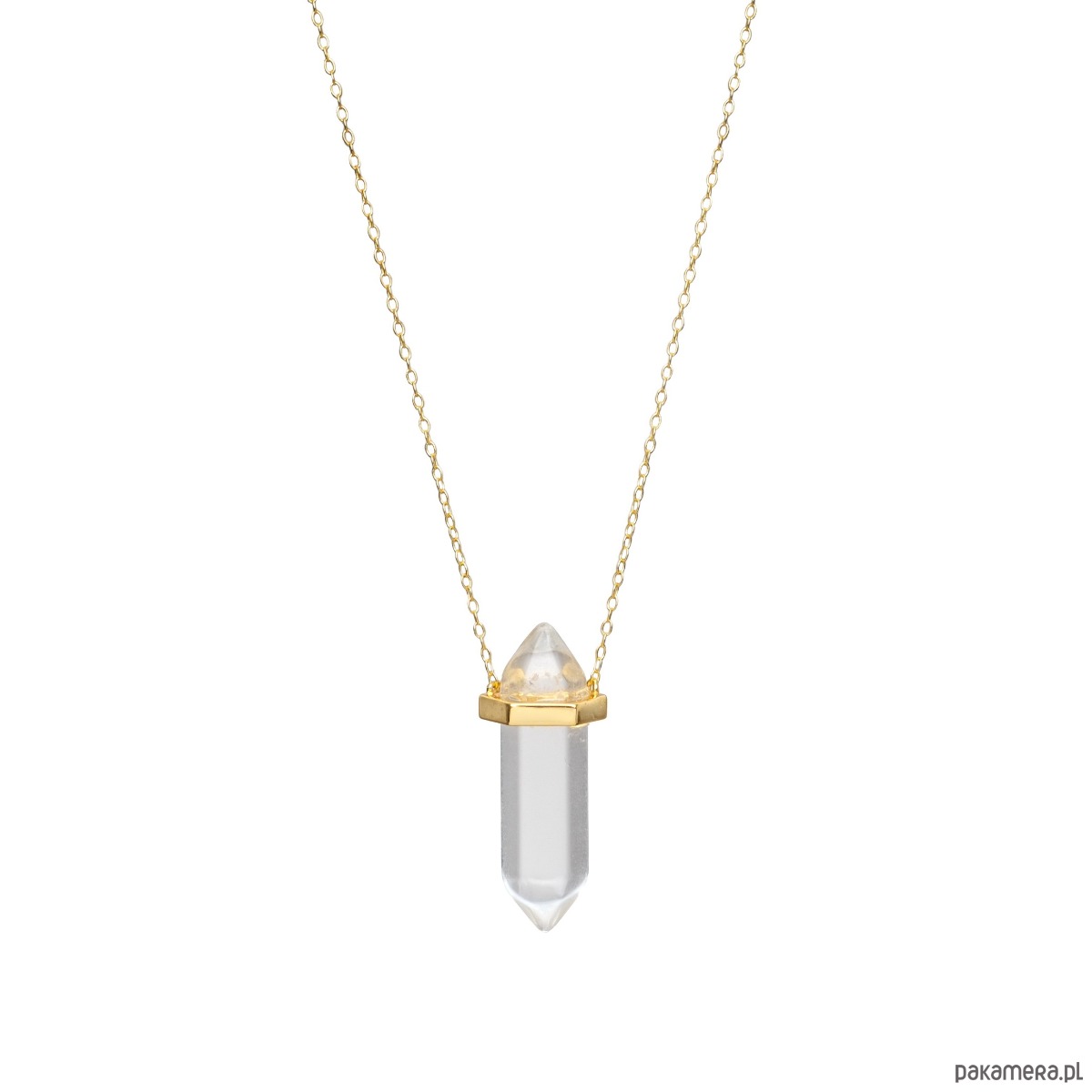 Naszyjnik ozdobiony dużym kryształem górskim- srebro 925 pozłacane