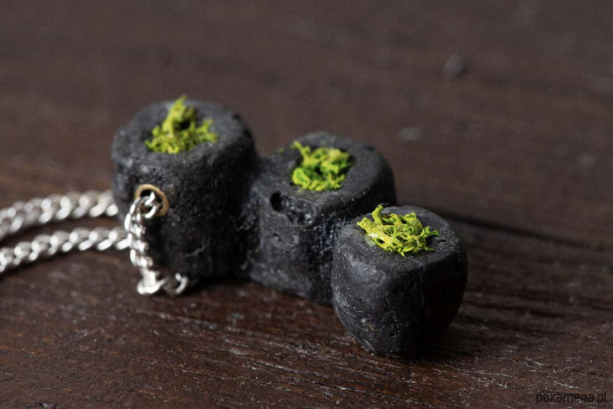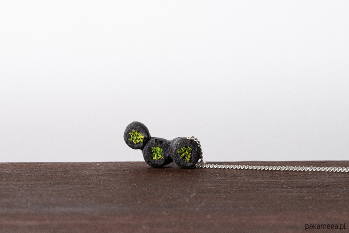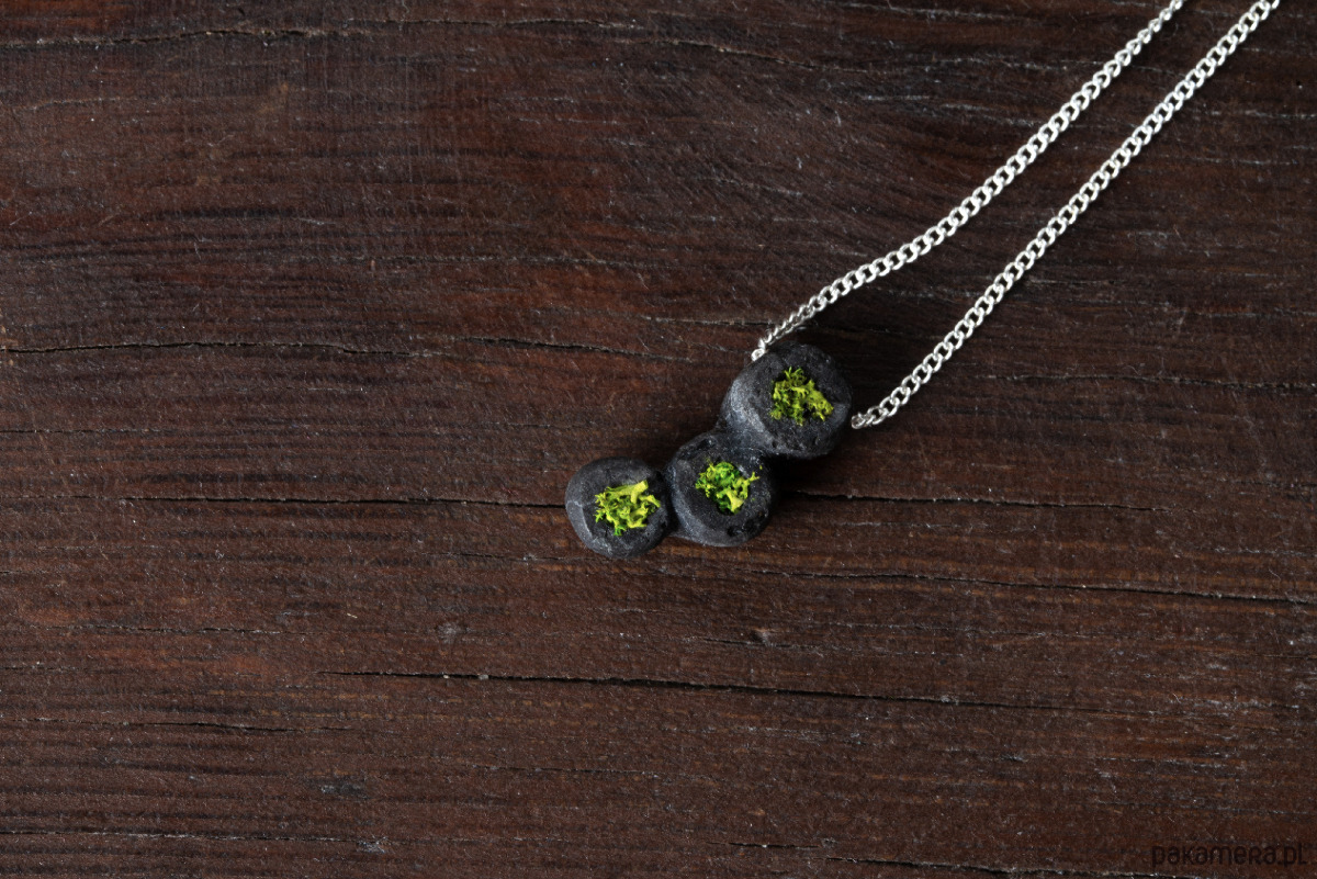 Delikatny naszyjnik inspirowany wyglądem morskich skorupiaków z betonu z chrobotkiem reniferowym