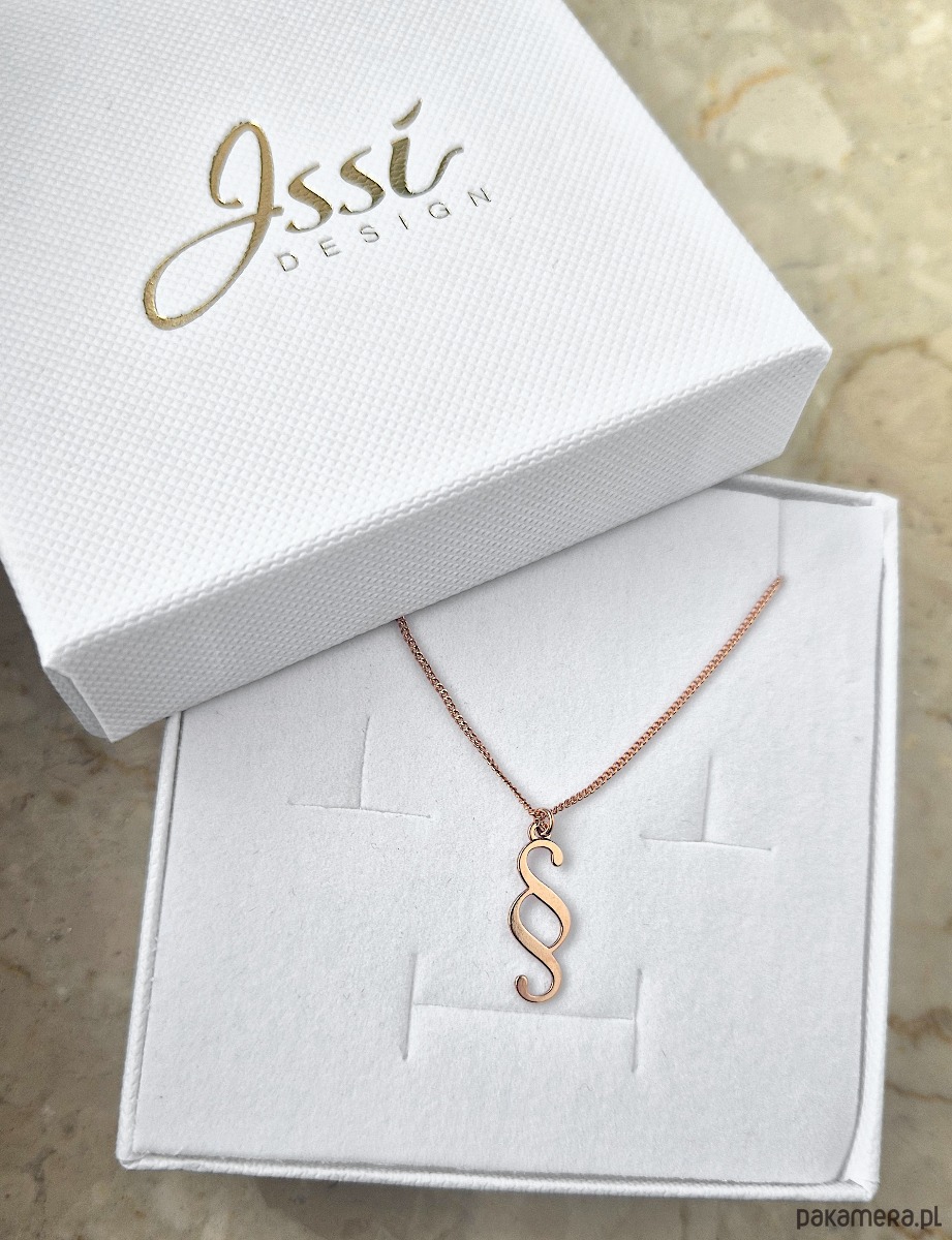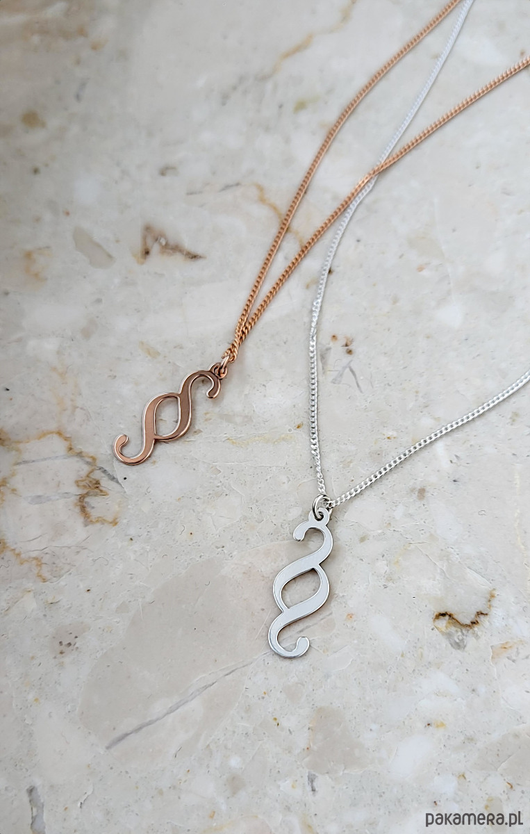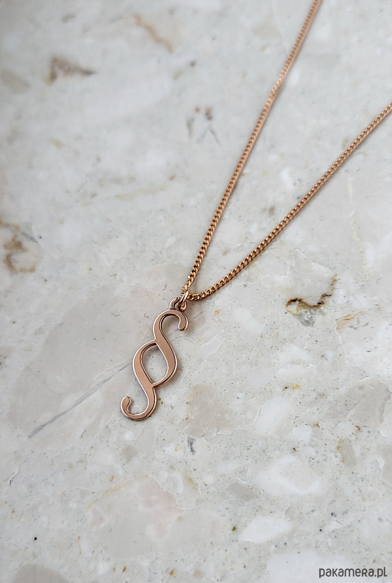 Naszyjnik wykonany ze srebra pr.925 pokrytego dwoma warstwami 18K różowego złota. Zawieszka w kształcie paragrafu.