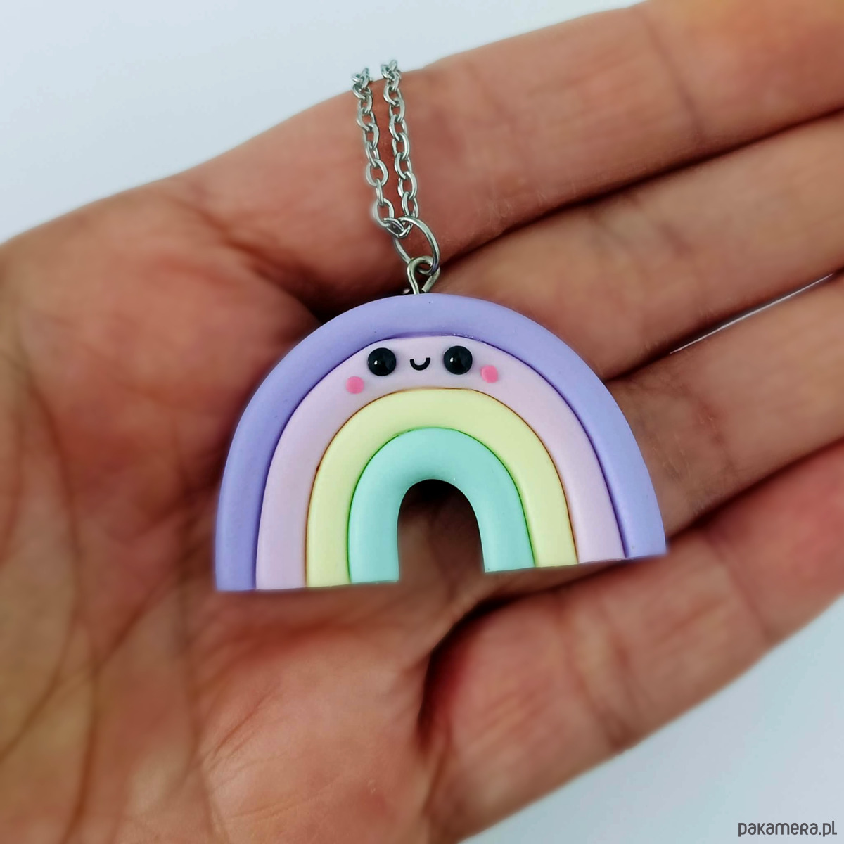 Zabawny naszyjnik wykonanych ręcznie z masy termoutwardzalnej Fimo i z wysokiej jakości łańcuszka ze stali. Wielkość zawieszki to ok. 4 cm. Długość łańcuszka to 50 cm + łańcuszek regulacyjny 5 cm (jeżeli chcesz krótszy lub dłuższy łańcuszek, to napisz o tym w uwagach do zamówienia). Naszyjnik świetnie nadaje się na prezent.