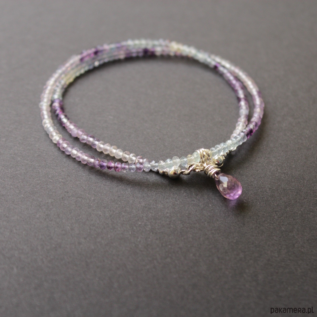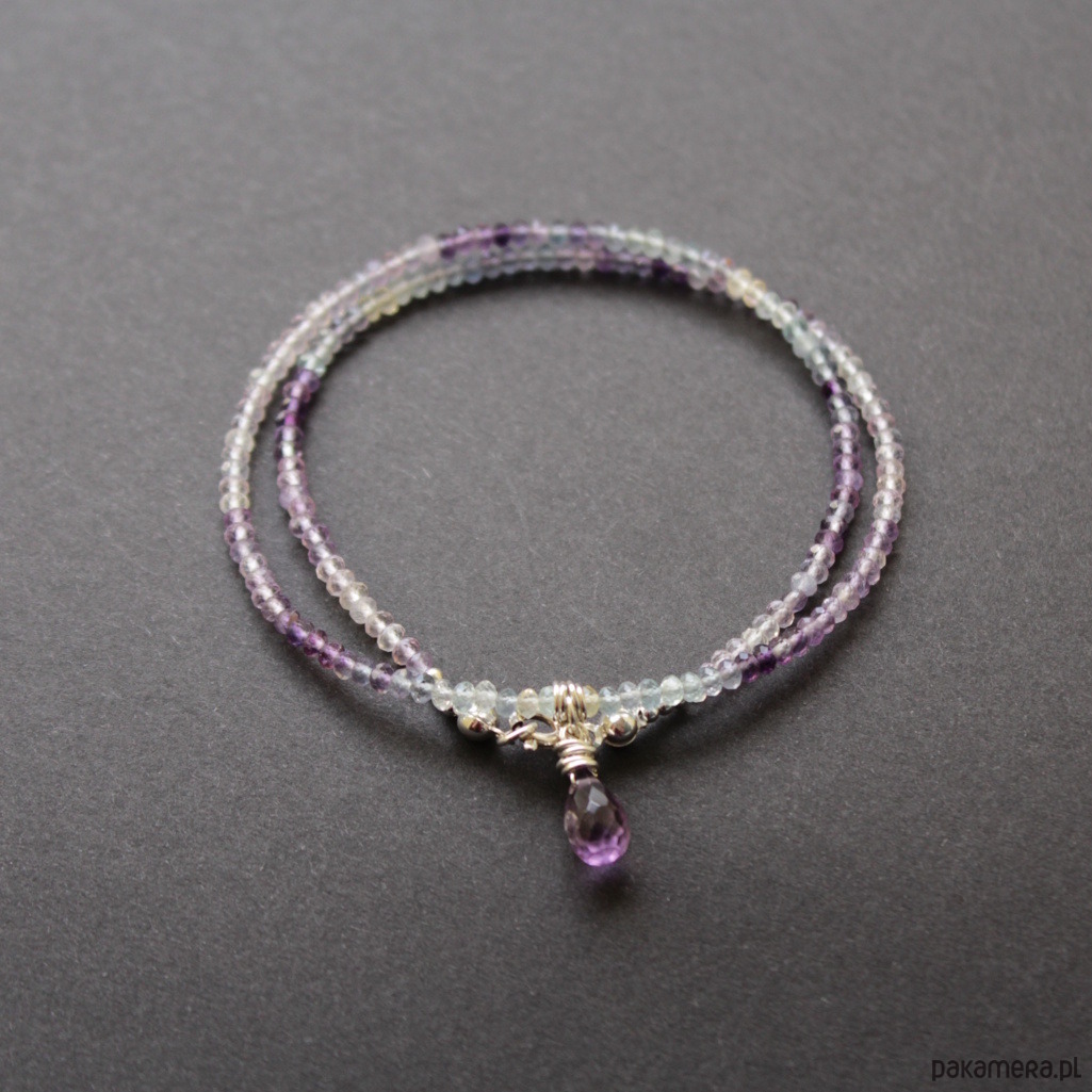 Przepiękny unikatowy naszyjnik wykonany został ze srebra próby 925 oraz fasetowanych fluorytów o przepięknym drobnym szlifie.
