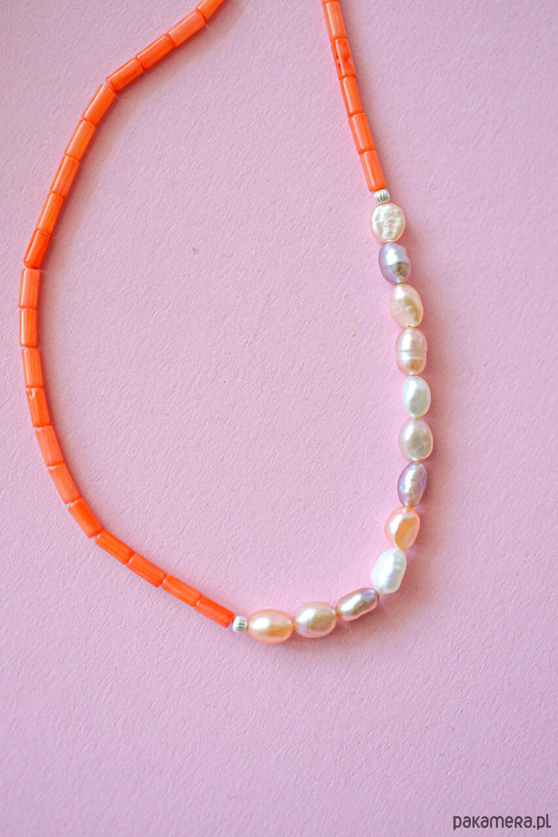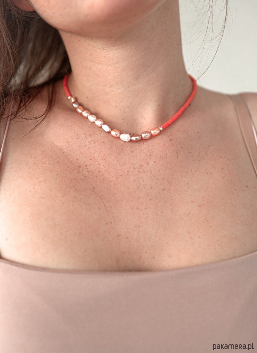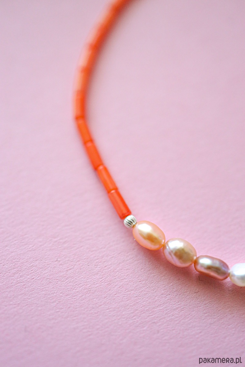 Naszyjnik regulowany na sznurku wykonany z kamieni naturalnych , oraz srebra p. 925