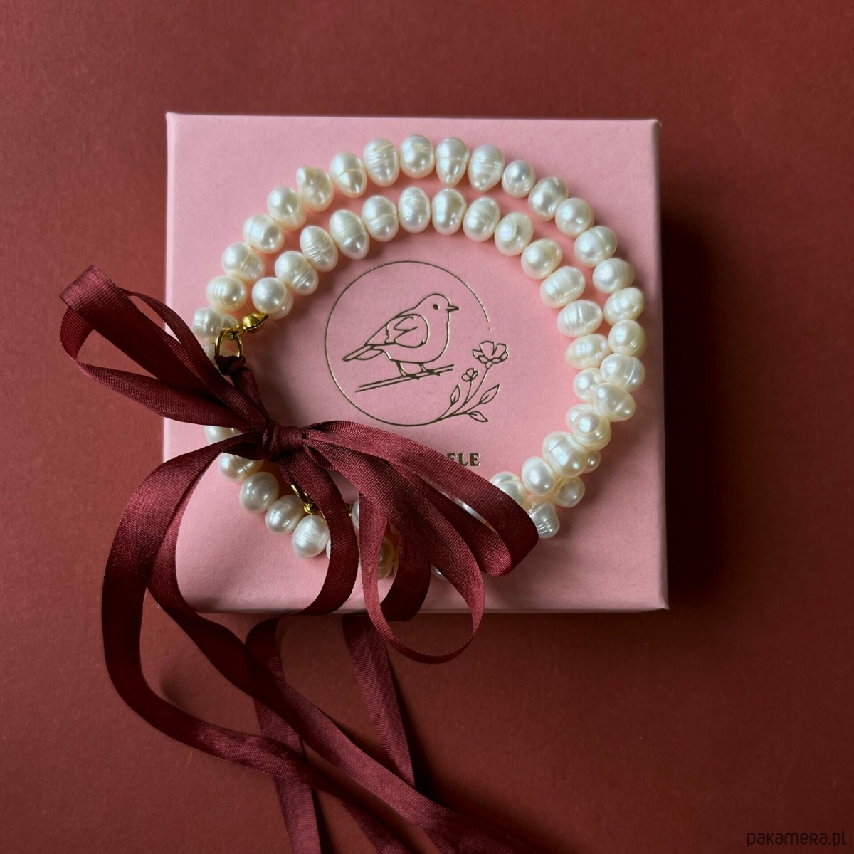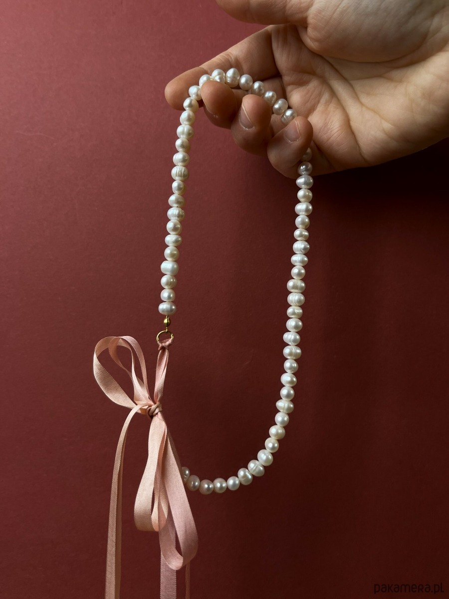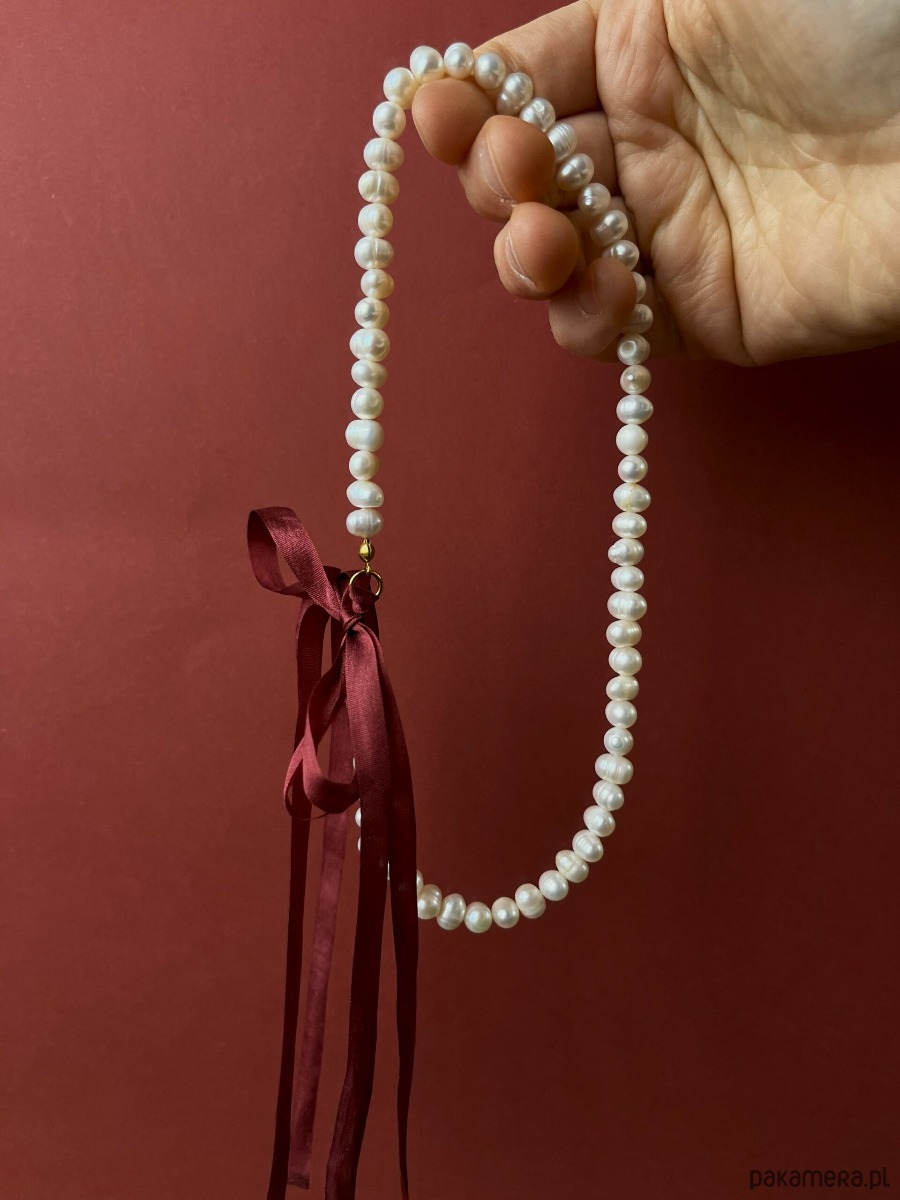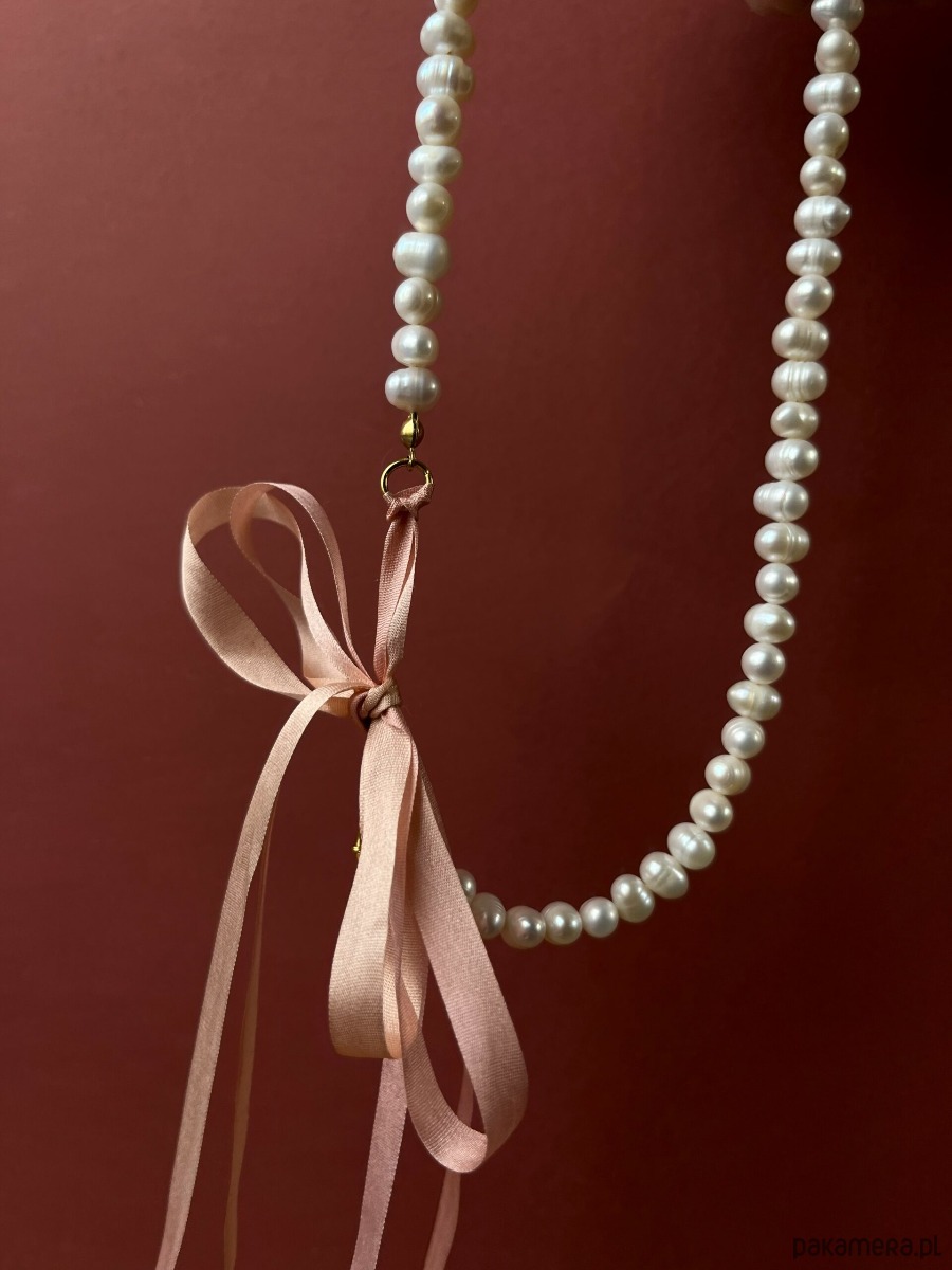 Skład: perła słodkowodna, wstążka 100% jedwab