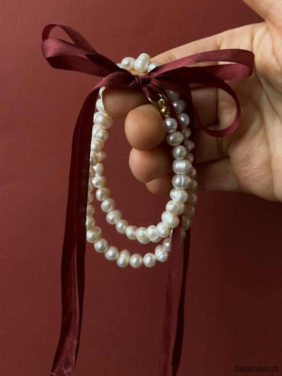 Jeśli jednak wolisz mniej wymagające rozwiązania, w sklepie znajdziesz także naszyjnik Pearl&Velvet z aksamitką — sztywniejszą, bardziej odporną i mniej kapryśną.