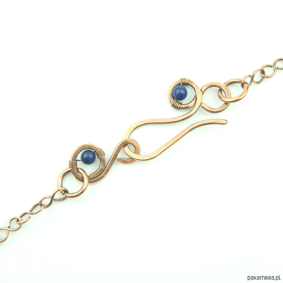 Materiał: lapis lazuli, hematyt, miedziany drut jubilerski.