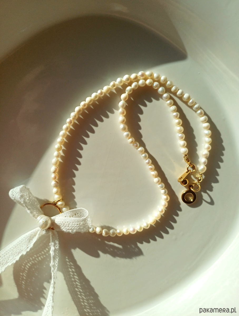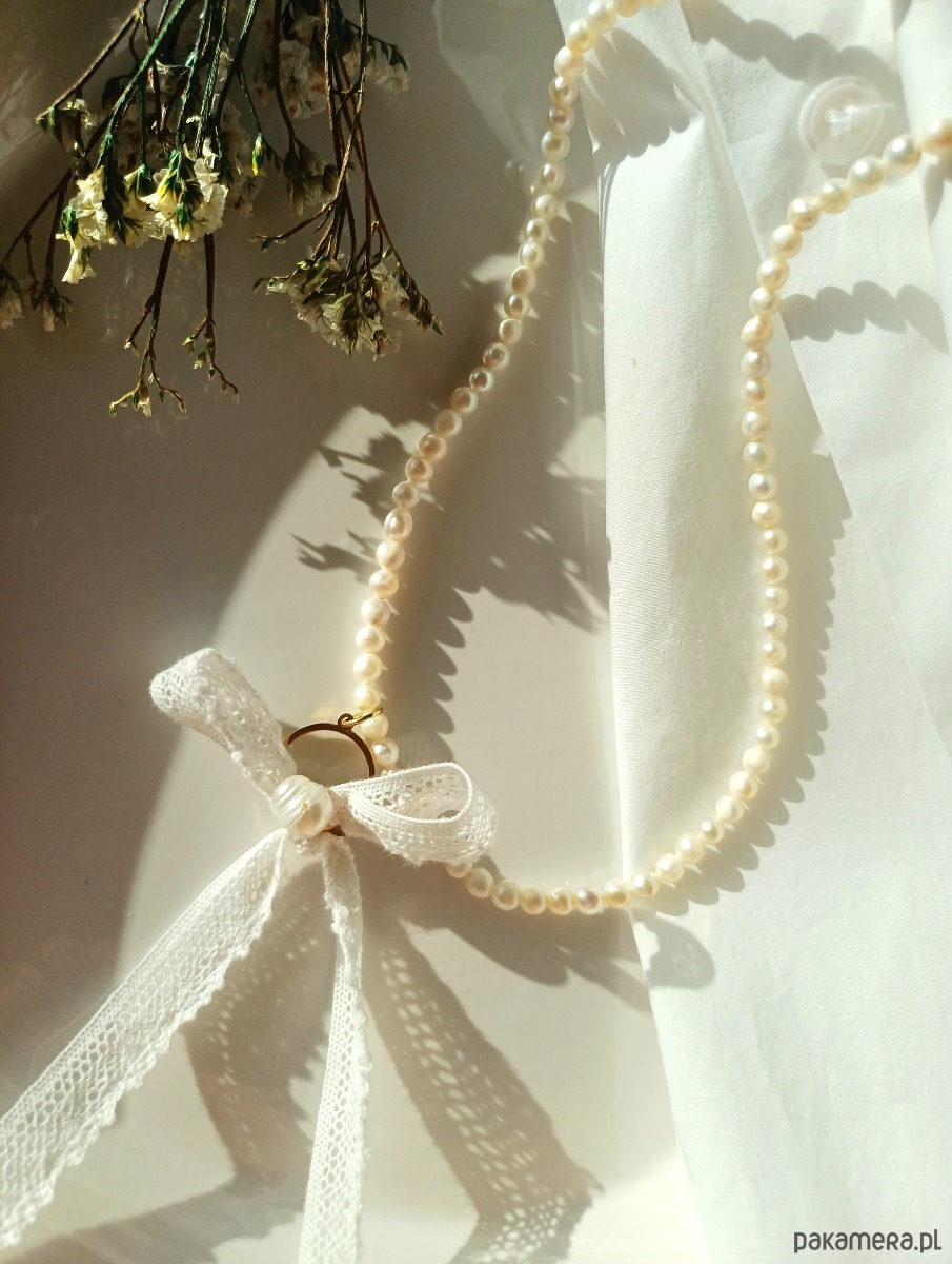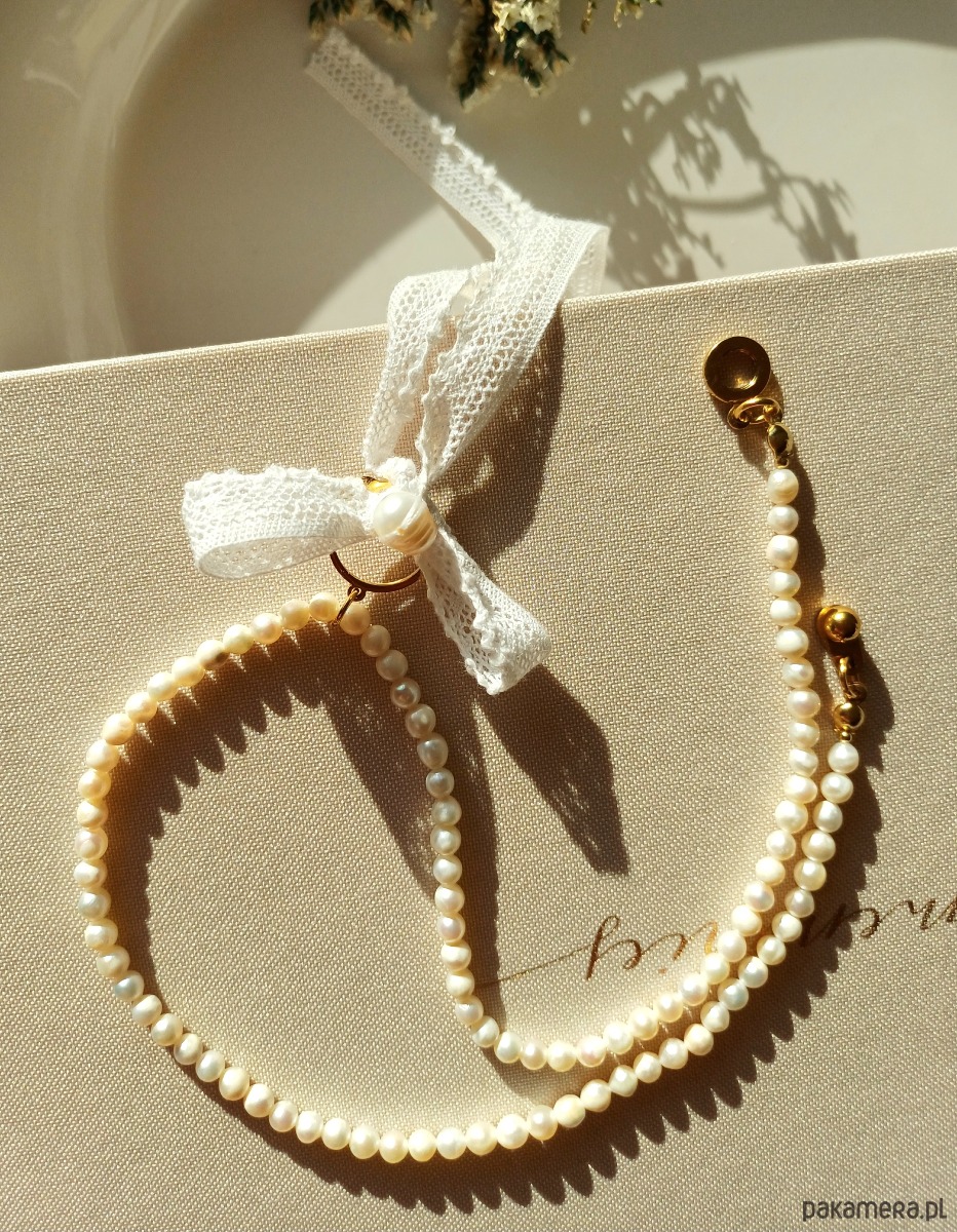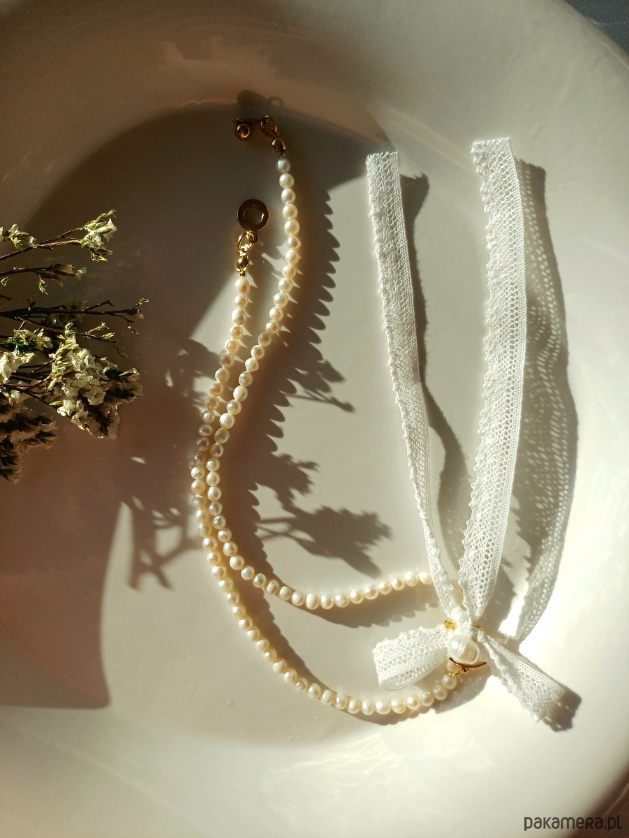 połączenie koronki i pereł to subtelne nawiązanie do stylu retro, wraz z nowoczesnym zapięciem stwarza lżejsze wydanie.
