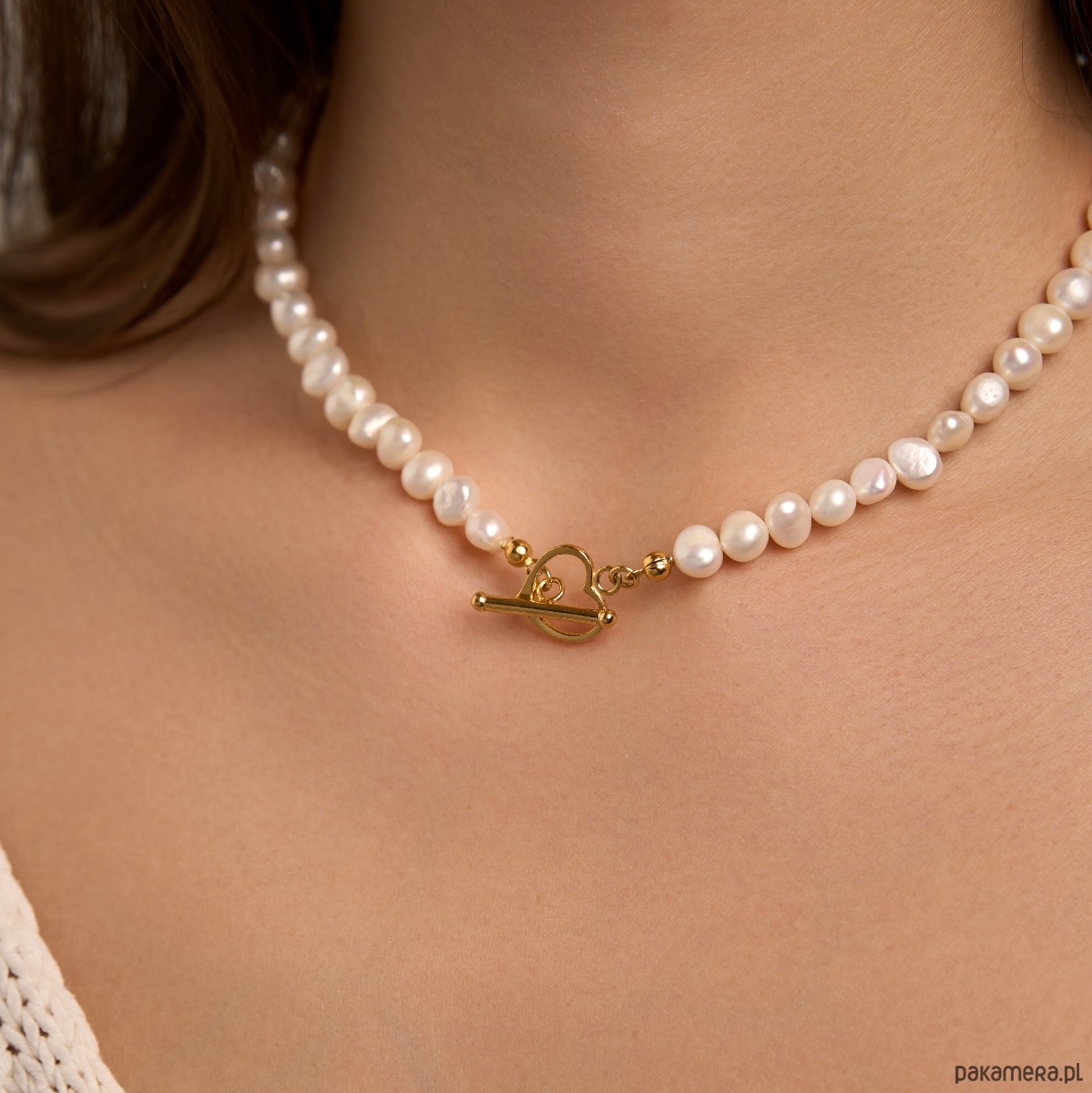 Choker / naszyjnik z naturalnych barokowych pereł słodkowodnych oraz srebra 925 pozłacanego