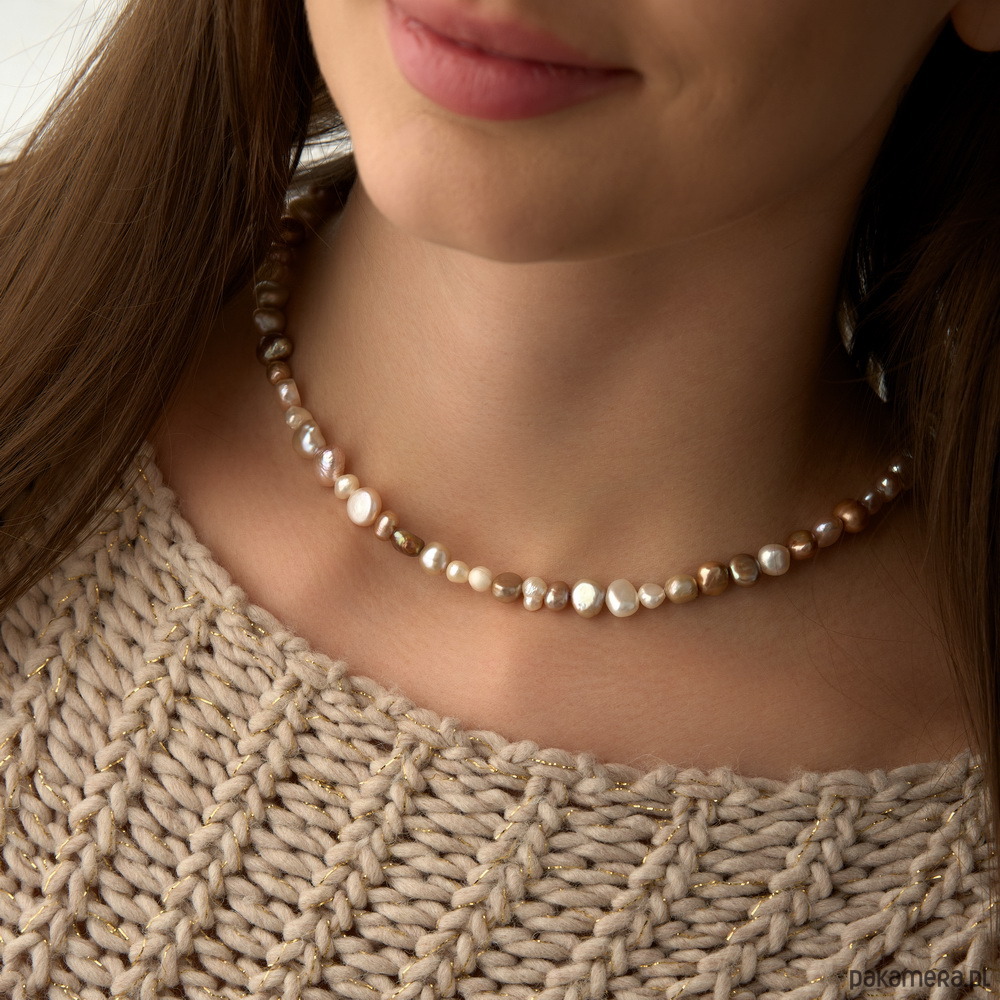 Choker / naszyjnik z naturalnych pereł słodkowodnych - srebro 925 pozłacane