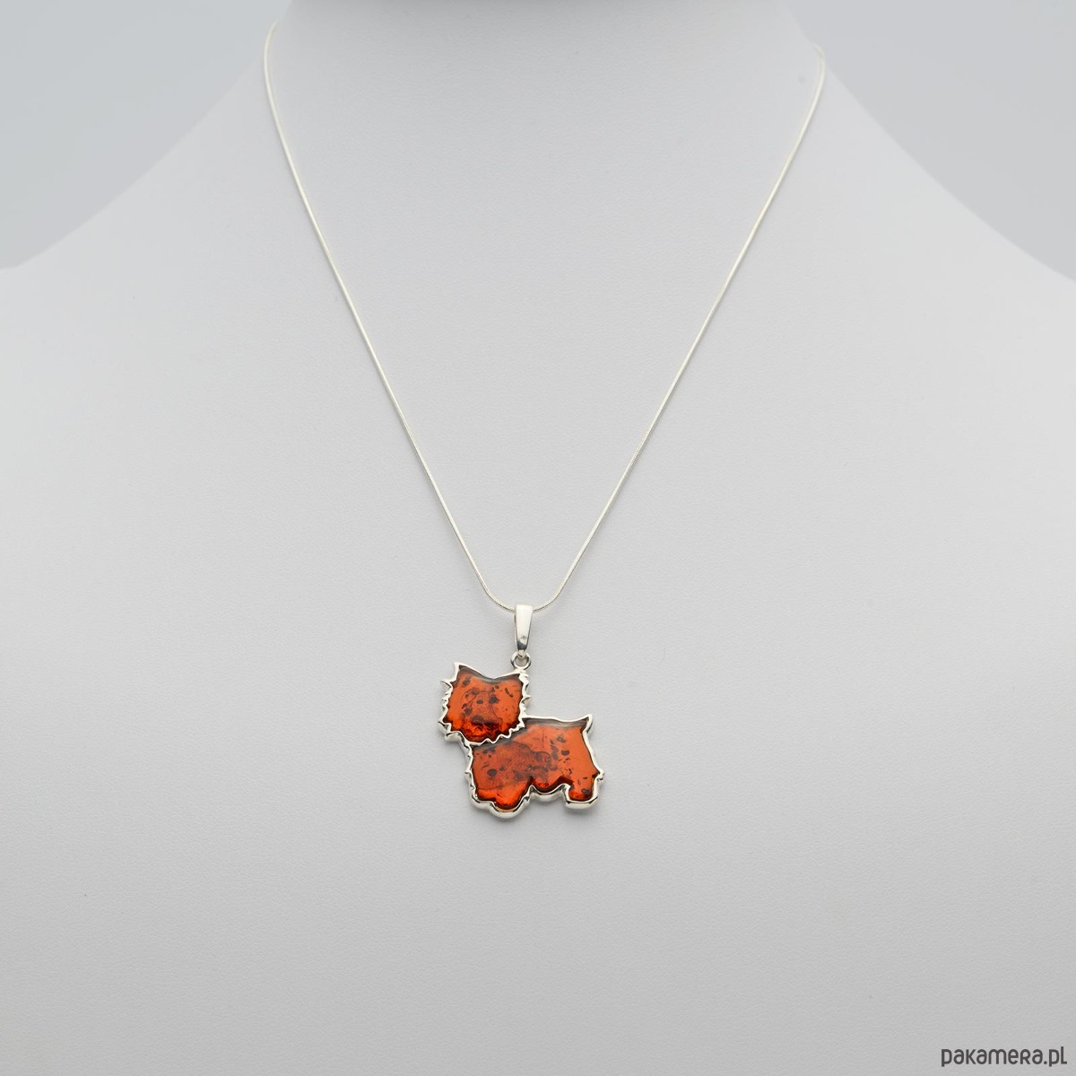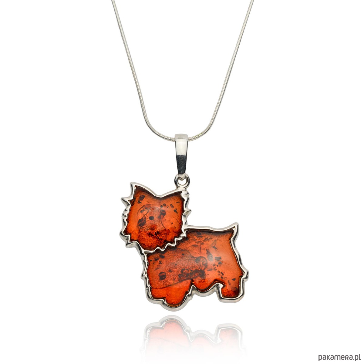 Naszyjnik piesek - Terier z bursztynu , srebro 925