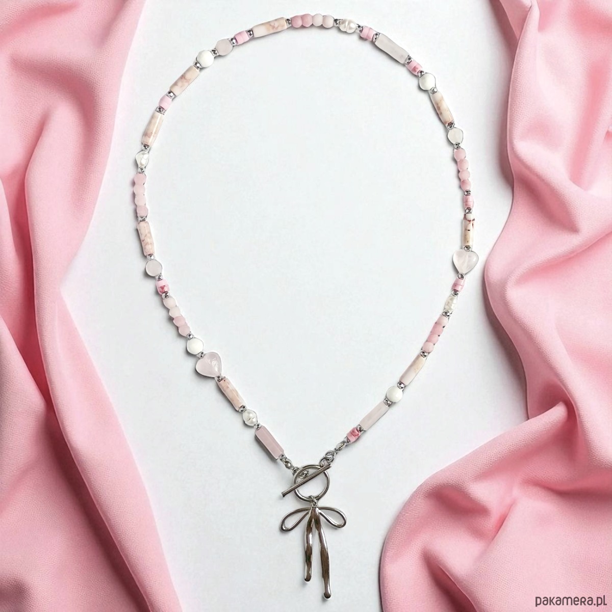 Naszyjnik pinky pink : różowy naszyjnik z kokardką