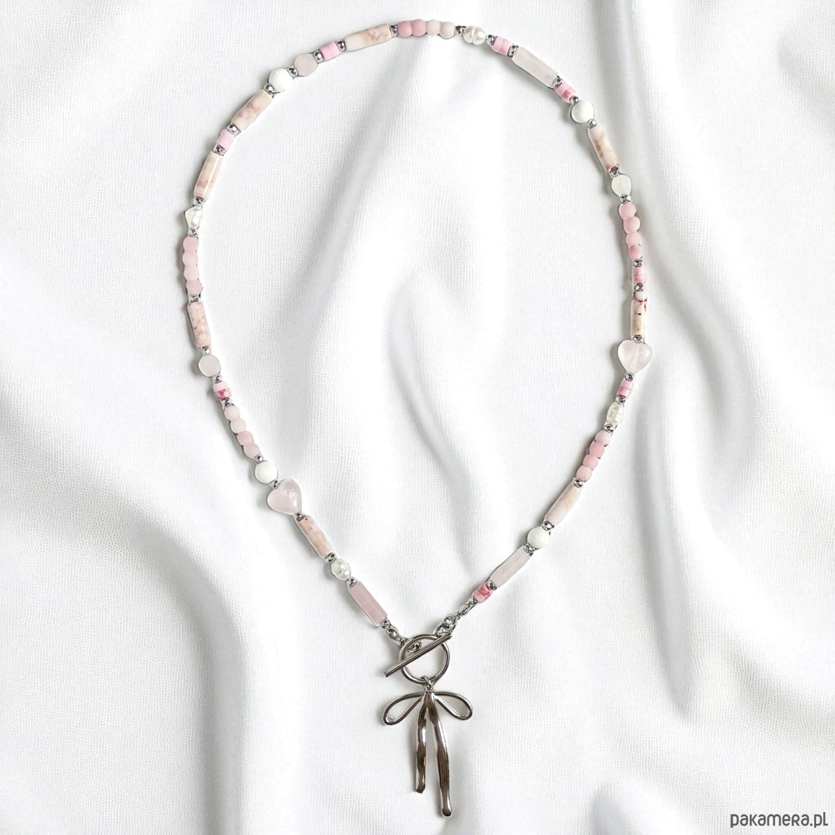 Naszyjnik pinky pink : różowy naszyjnik z kokardką