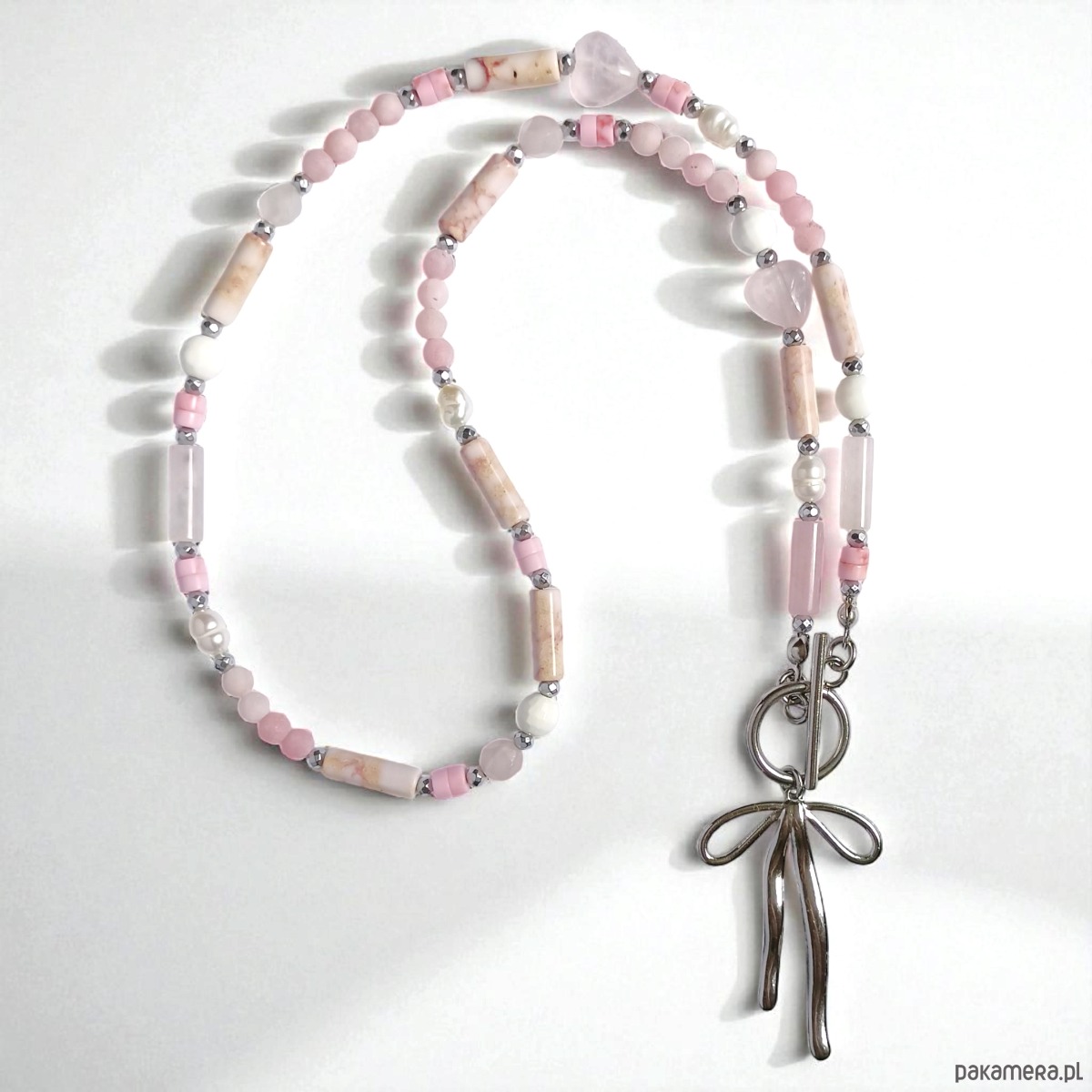 Naszyjnik pinky pink : różowy naszyjnik z kokardką