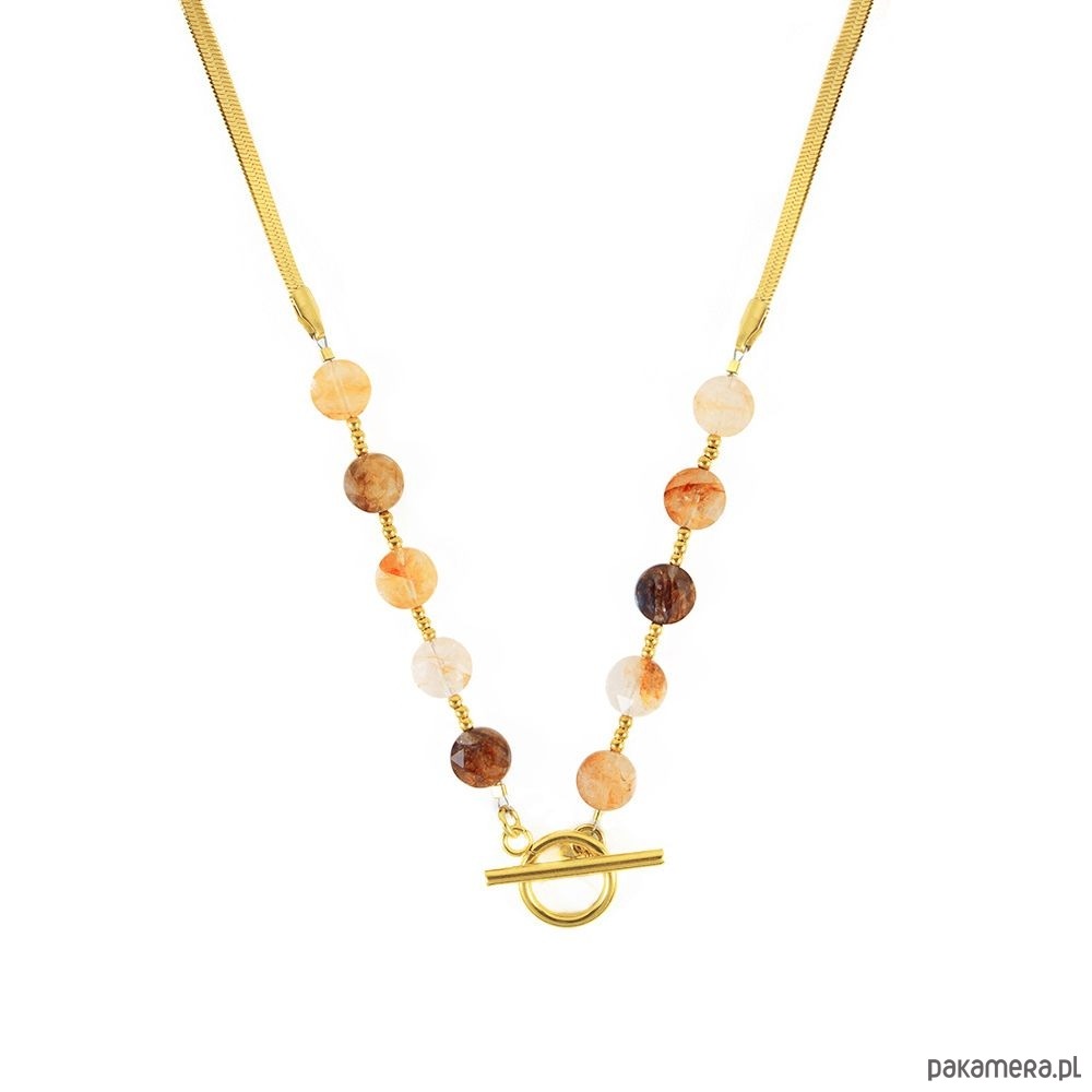Naszyjnik został wykonany ręcznie z naturalnych kamieni i wykończony łańcuszkiem typu żmijka, który nadaje mu nowoczesnej lekkości. Ozdobne zapięcie toggle stanowi elegancki akcent, łącząc funkcjonalność z biżuteryjną formą. To naszyjnik dla kobiet, które cenią subtelność, harmonię i blask natury – delikatny talizman miłości i wewnętrznej siły. Znaczenie kamieni: Kwarc Truskawkowy to kamień miłości i harmonii. Wzmacnia poczucie wdzięczności, równowagę emocjonalną i wewnętrzny spokój. Pomaga otworzyć serce na uczucia, wspiera zaufanie i szczere relacje. Łagodzi stres, koi emocje i przyciąga pozytywną energię, wprowadzając do życia ciepło, radość i spokój ducha. Hematyt to kamień wojowników. Silnie oczyszcza krew. Budzi radość do życia, dodaje odwagi i wiary we własne umiejętności. Wymiary: Kamienie: Kwarc Truskawkowy/Hematyt Wielkość kamieni: 8mm/2mm Grubość żmijki: ok. 4mm Długość naszyjnika: ok.56cm Materiał: antyalergiczna stal szlachetna