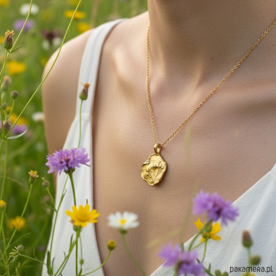 Naszyjnik "Polne Kwiaty z Cyrkonią" to wyjątkowy dodatek, który łączy w sobie elegancję z nutą natury. Delikatnym akcentem naszyjnika jest mała cyrkonia, która dodaje blasku i elegancji. Cyrkonia jest osadzona nad wzorem polnych kwiatów, co nadaje całości romantyczny charakter.
