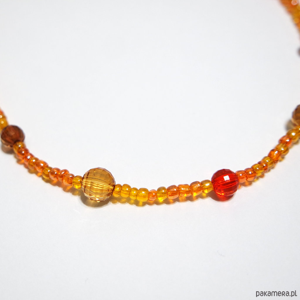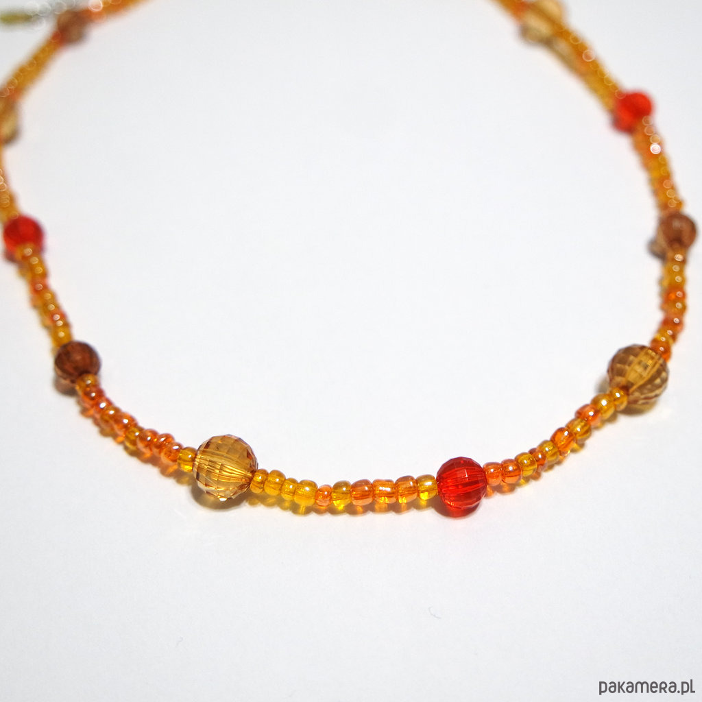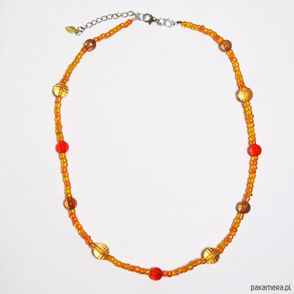 Naszyjnik wykonany ze szklanych oraz akrylowych koralików na gumce jubilerskiej, zapięcie na karabińczyk.