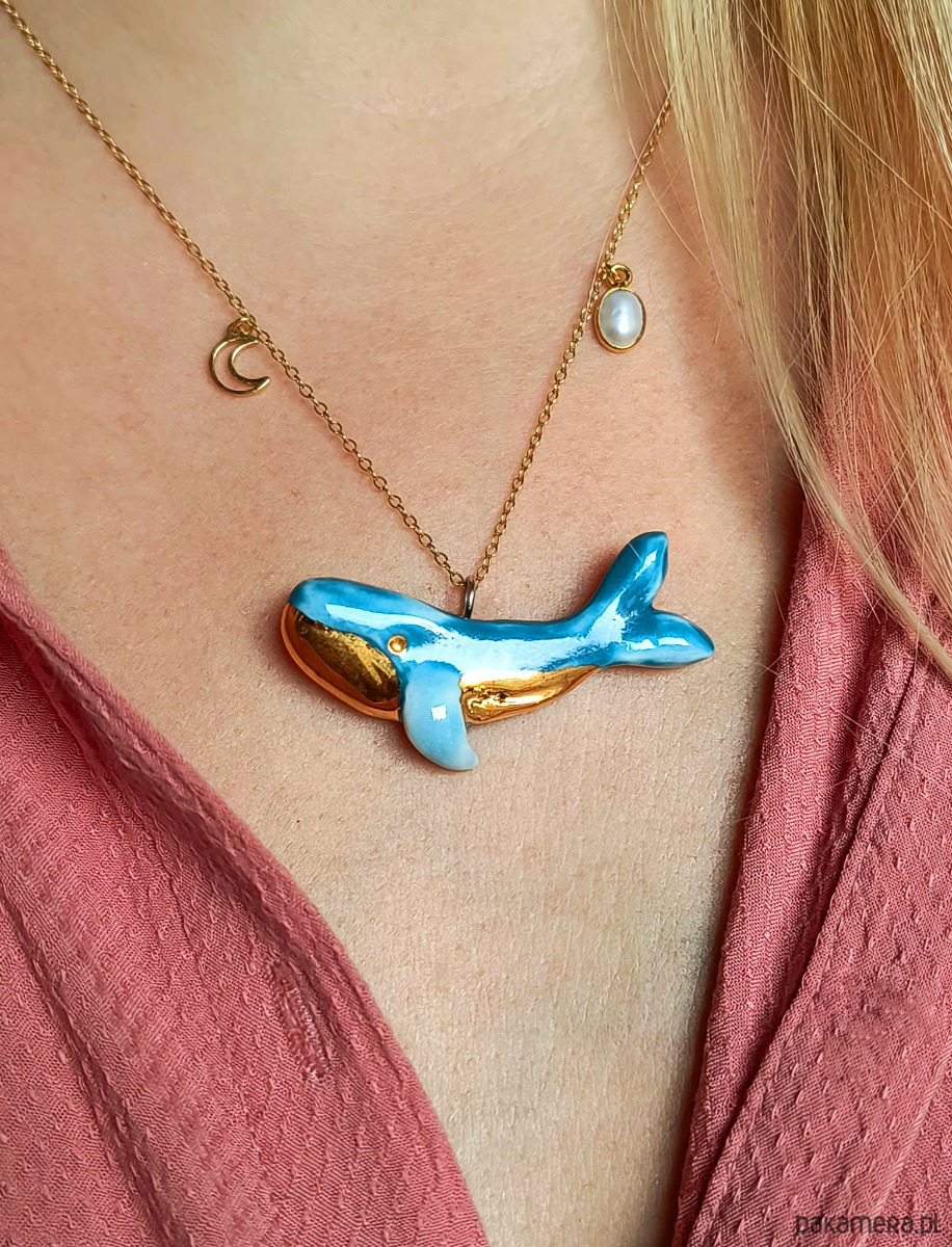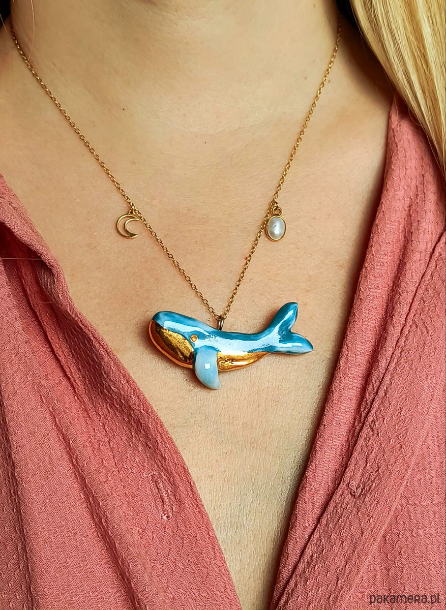 Naszyjnik pozłacany Ceramiczny Wieloryb, Kolekcja Parian