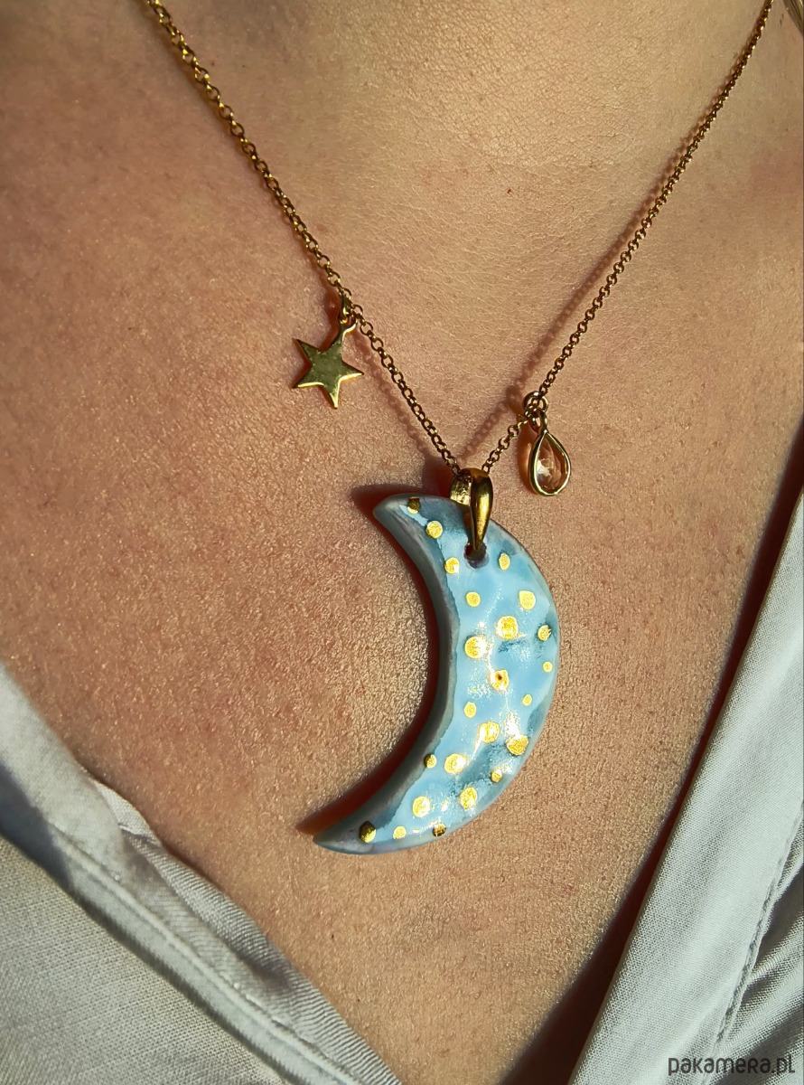 Naszyjnik wykonałam własnoręcznie ze szlachetnej porcelany, zdobiłam szkliwem oraz 24-karatowym złotem.