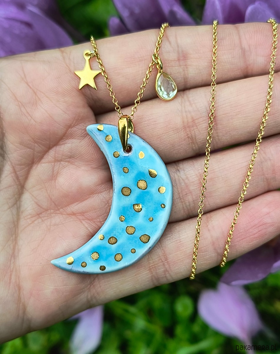 Naszyjnik wykonałam własnoręcznie ze szlachetnej porcelany, zdobiłam szkliwem oraz 24-karatowym złotem.
