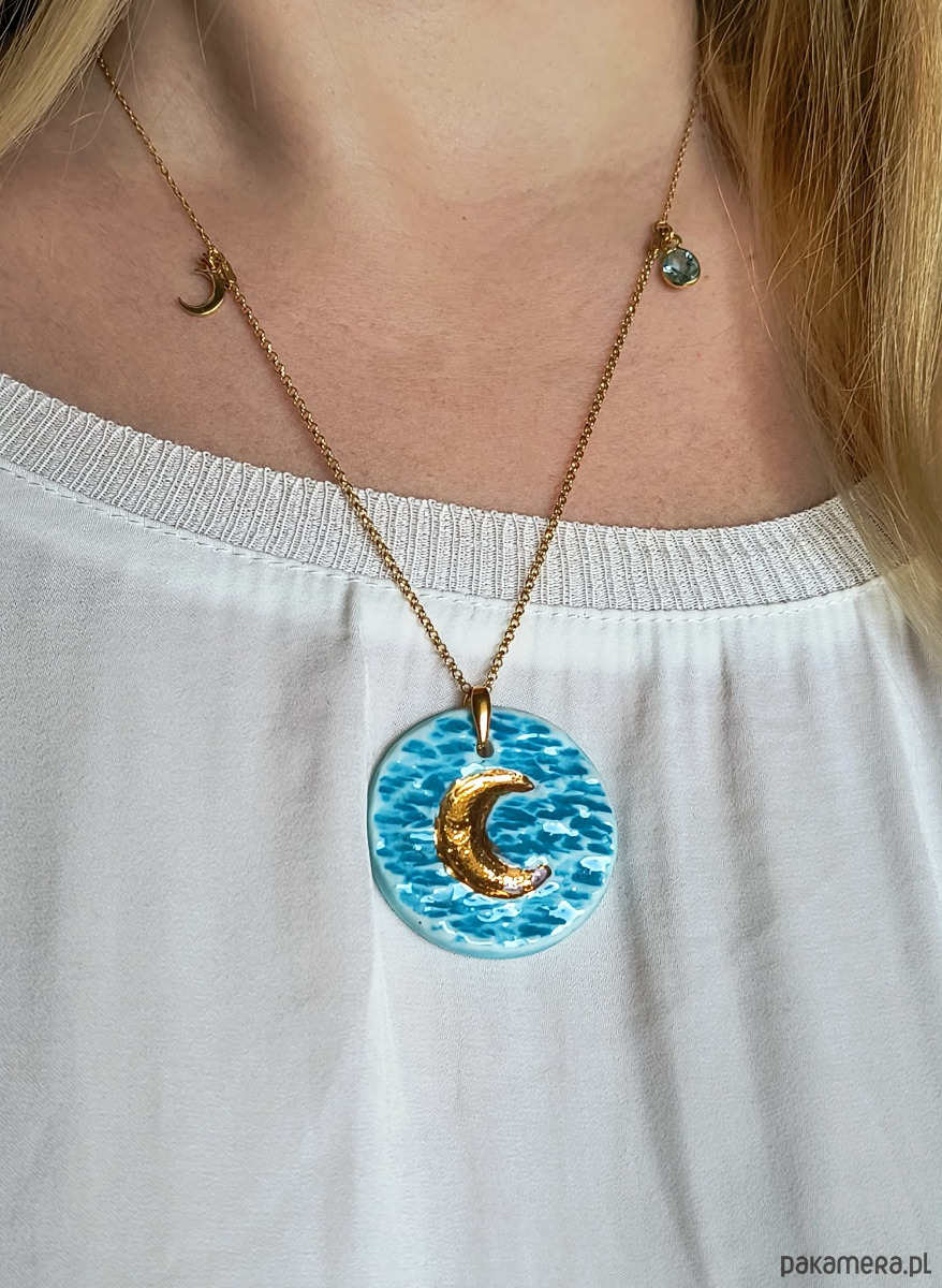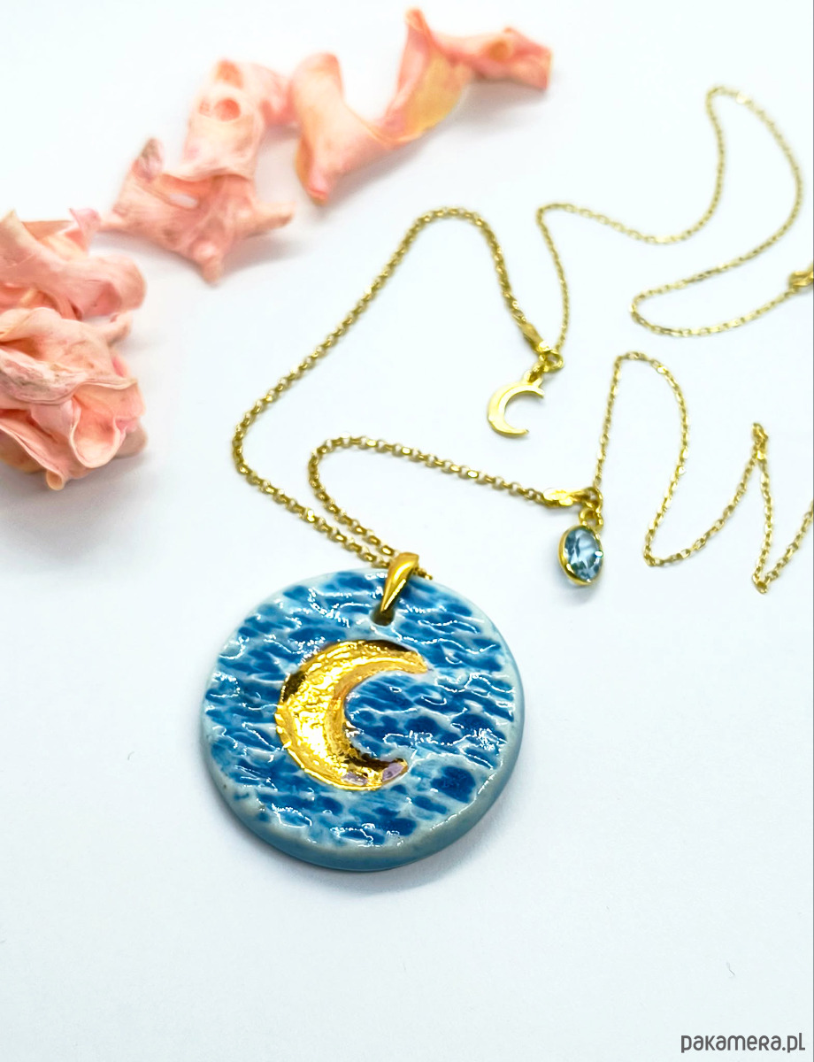 Naszyjnik pozłacany Księżyc Nad Oceanem Topazem Kolekcja Parian