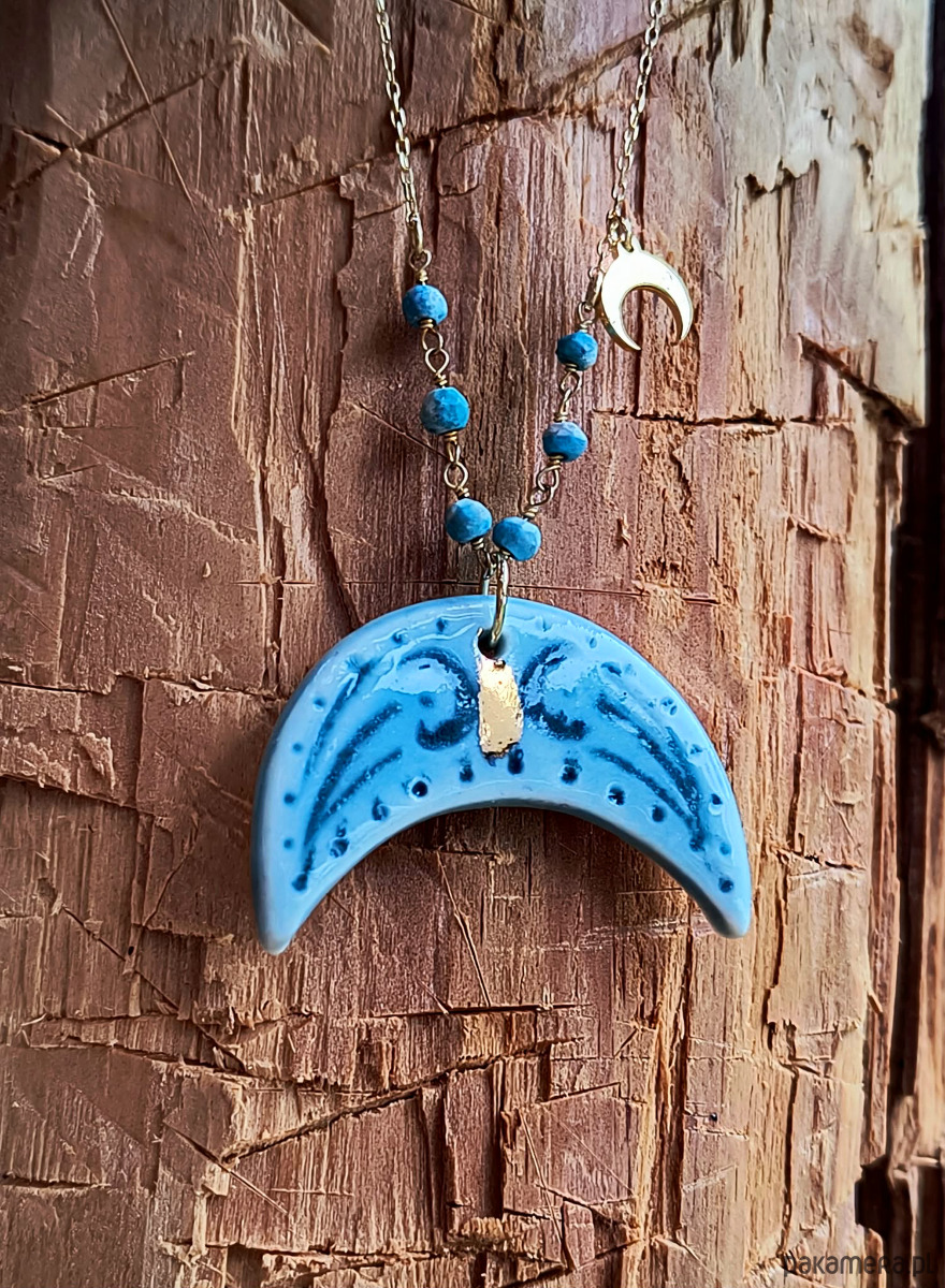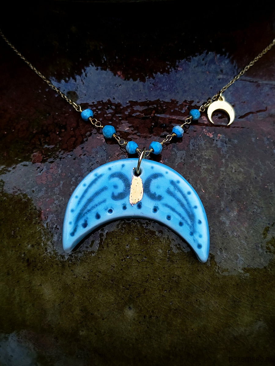 Naszyjnik wykonałam własnoręcznie ze szlachetnej porcelany, zdobiłam szkliwem oraz 24-karatowym złotem.