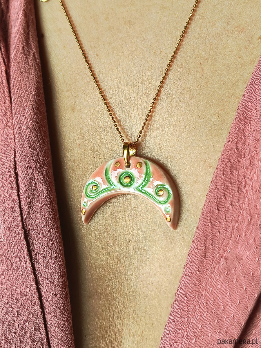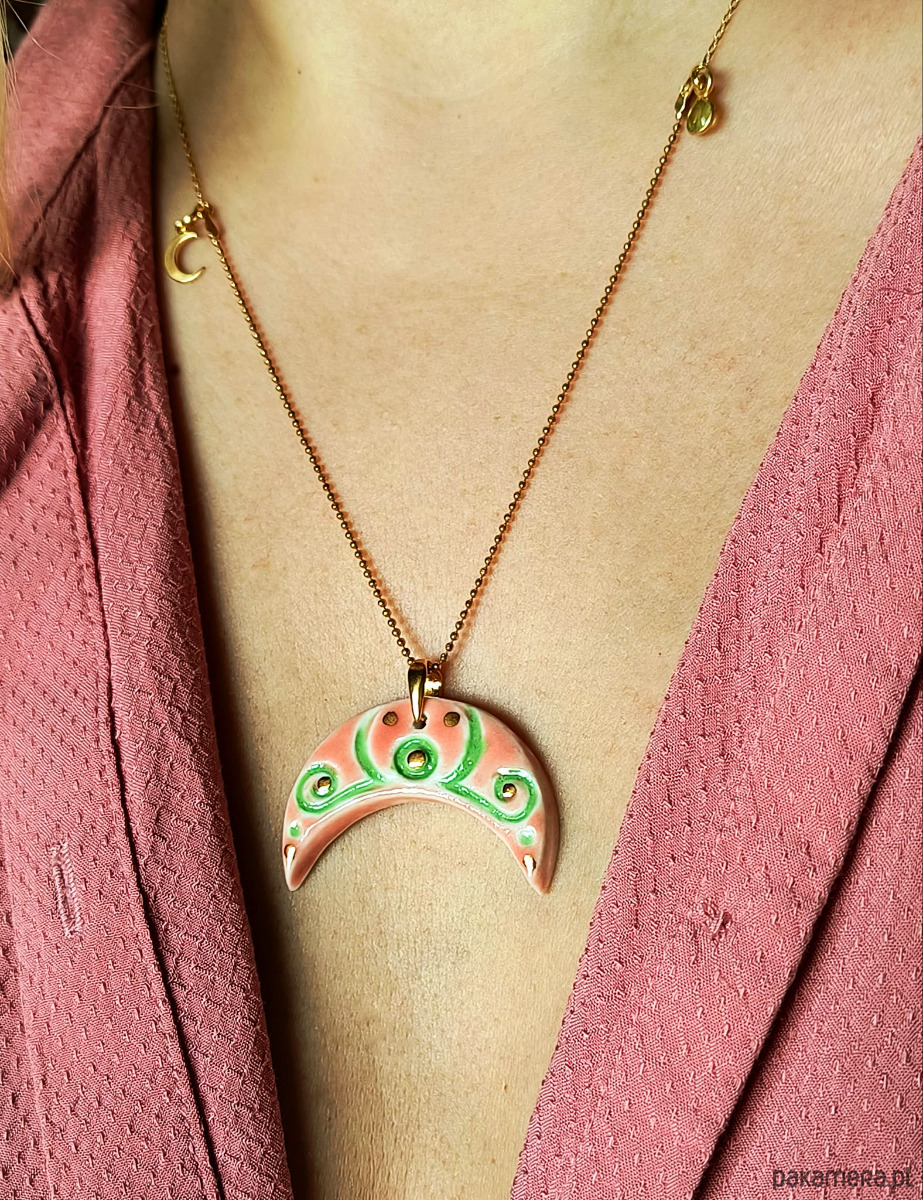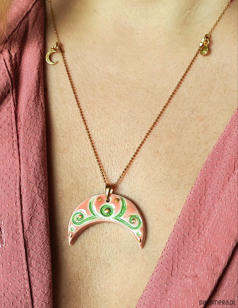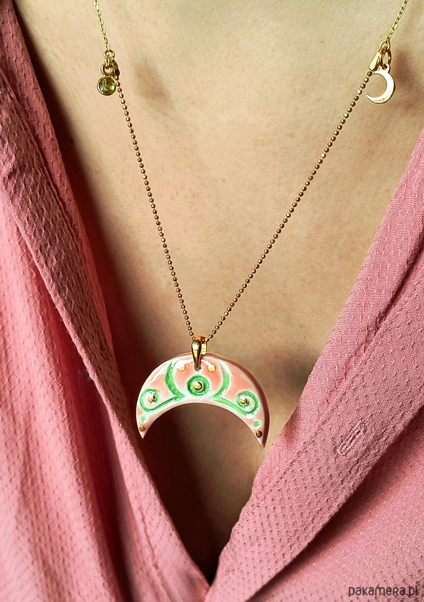Łańcuszek ozdobiony jest księżycem oraz oliwinem